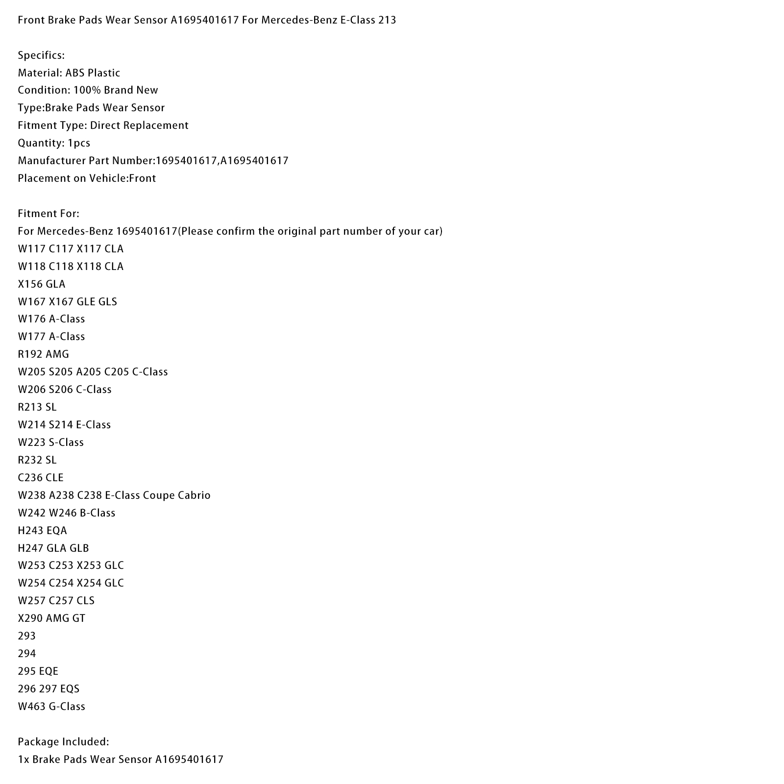 Front Brake Pads Wear Sensor A1695401617 For Mercedes-Benz E-Class 213