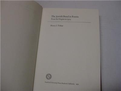 Jewish Bund in Russia from Its Origins to 1905 by Henry Jack Tobias