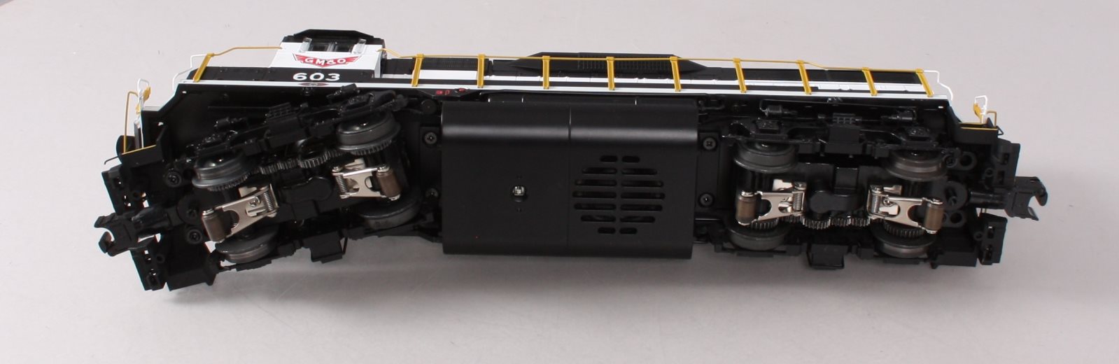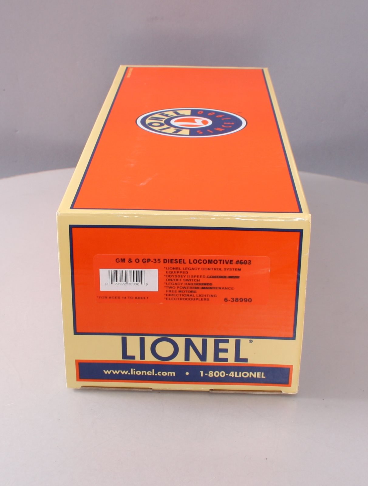 This is Lionel 6-38990 GM&O LEGACY GP-35 #603. Gulf, Mobile & Ohio LEGACY scale GP35 diesel #603. Produced in the mid-1960s, EMD’s GP35 diesel locomotive proved a popular choice for railroads looking to upgrade from their first-generation engines. The GP35 produced 2500 horsepower, making it versatile and relatively efficient.