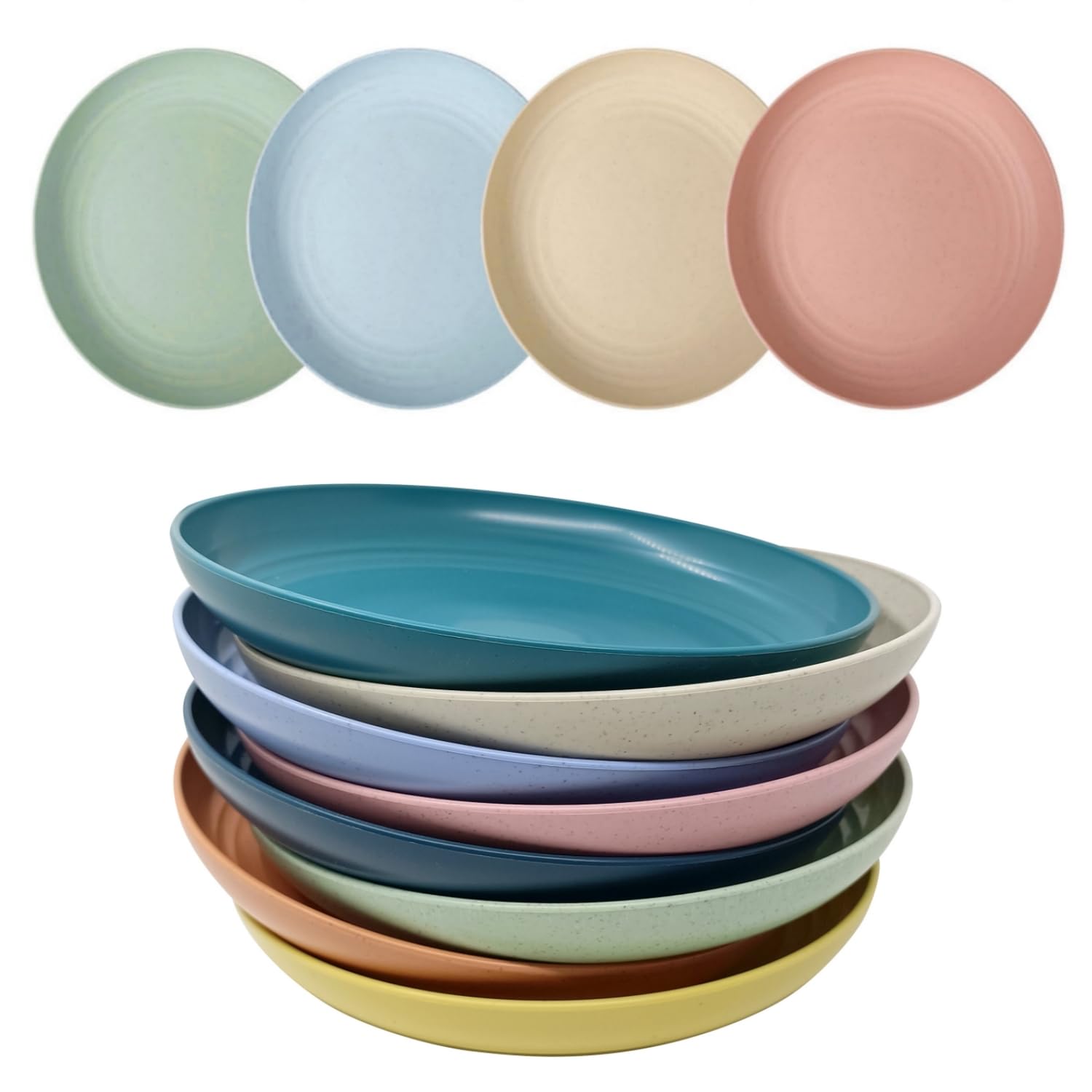 CAMBUY Wheat Straw Plates Lightweight Large, Large Double Multicolour