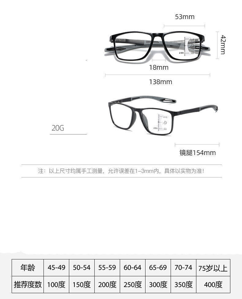 Bifocal Progressive Lenses TR90 Reading Glasses