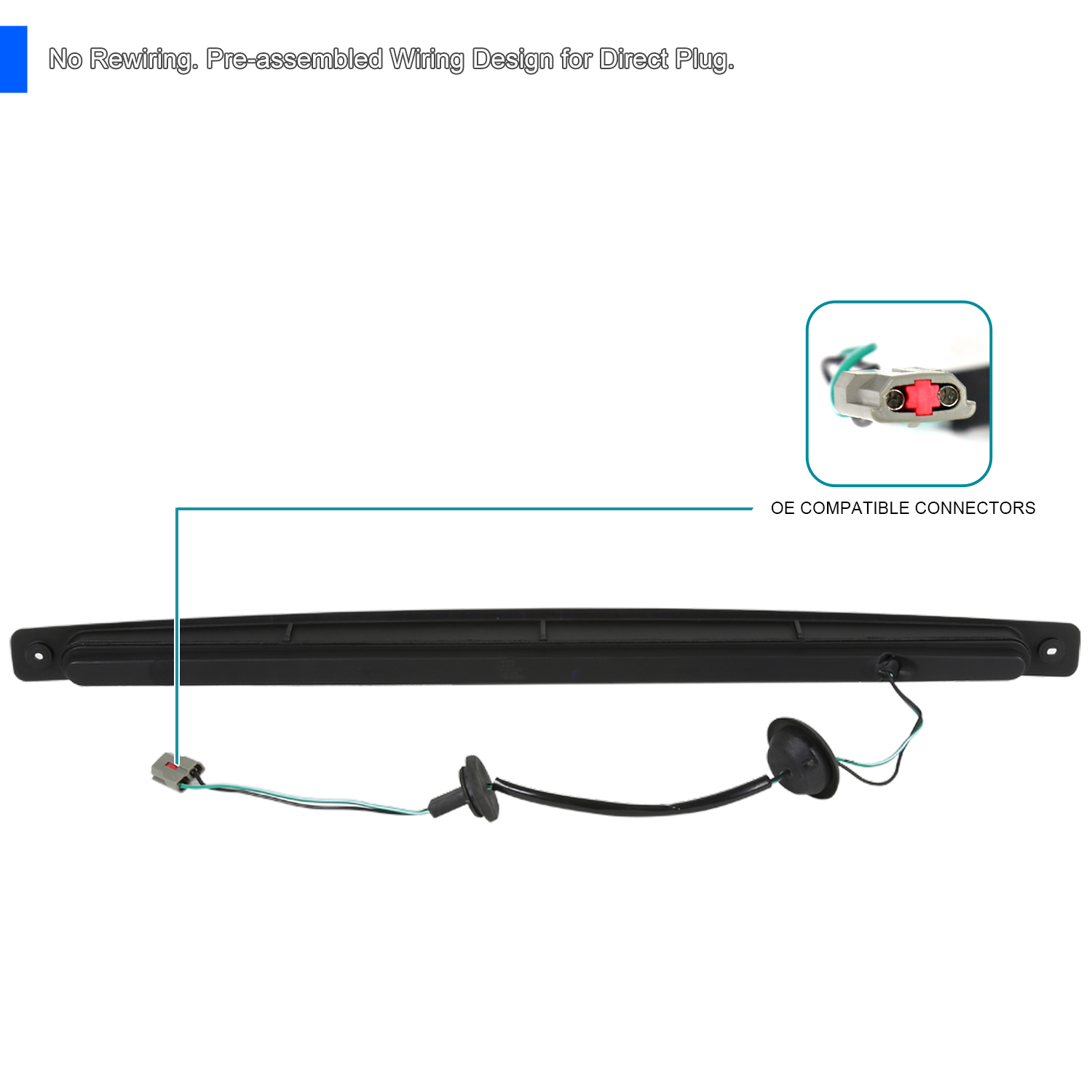 DESCRIPTION: Brand new in original packaging. Comes with 1 piece of black housing smoke lens sequential LED 3rd brake light. All wiring for the light are pre-assembled for easy plug & play application. Made by an ISO certified manufacturer using materials that meet strict OEM requirements. Professional installation is recommended.