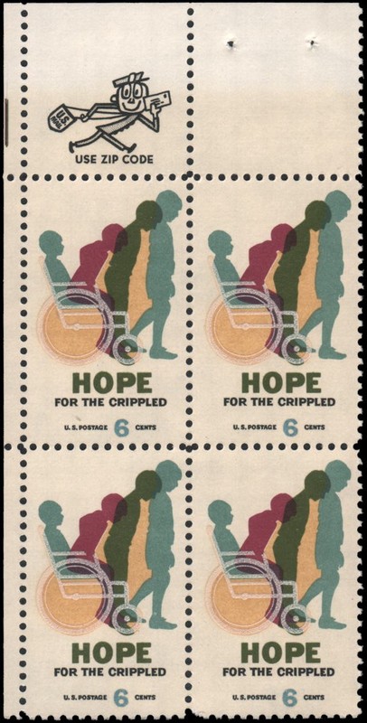 | zip block of 4, 6c Hope for Crippled |
