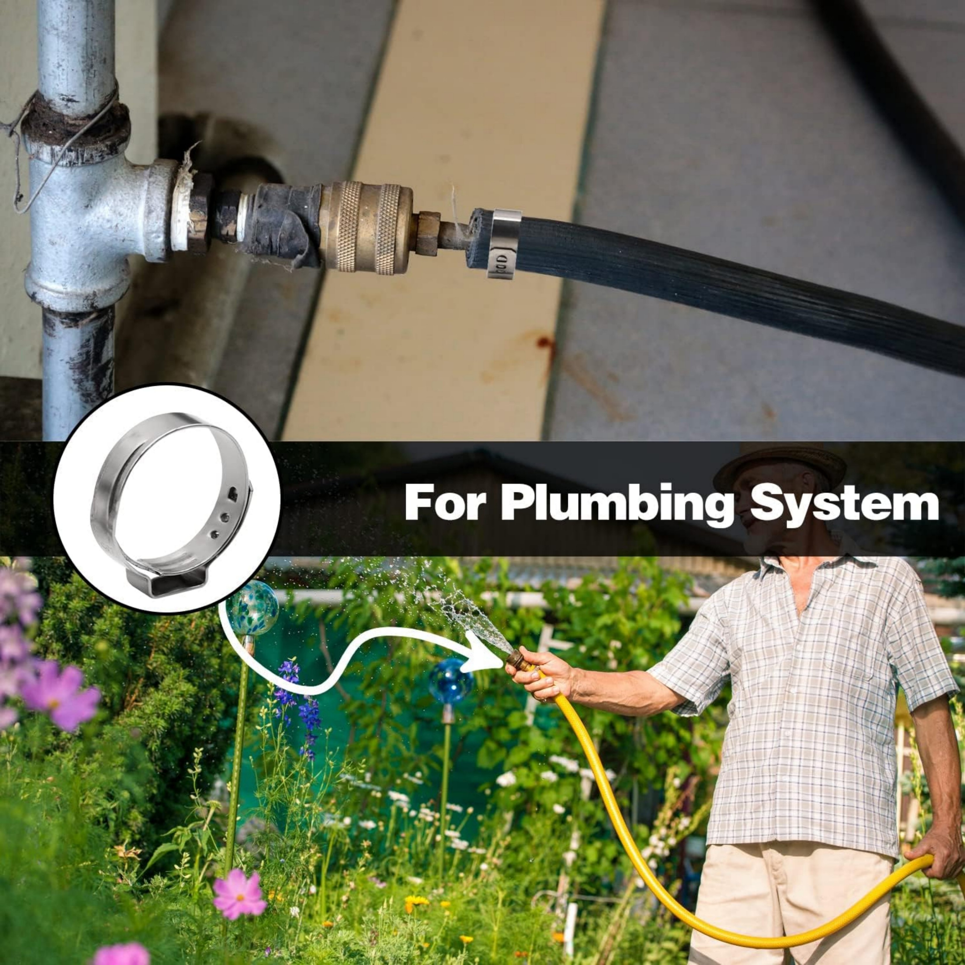 【Wide Application】- PEX single ear hose clamps can be used to secure hoses, pipe, tube, PEX plumbing, cables, etc. They are suitable for both indoor or outdoor like automotive, industrial, boat/marine, shield, household etc.