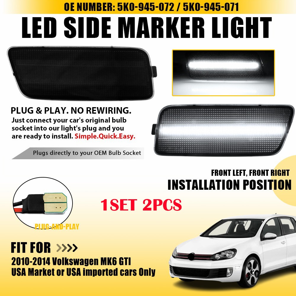 • Smoked Lens Amber/White LED Front Side Marker Lights For 2010-2014 Volkswagen MK6 GTI