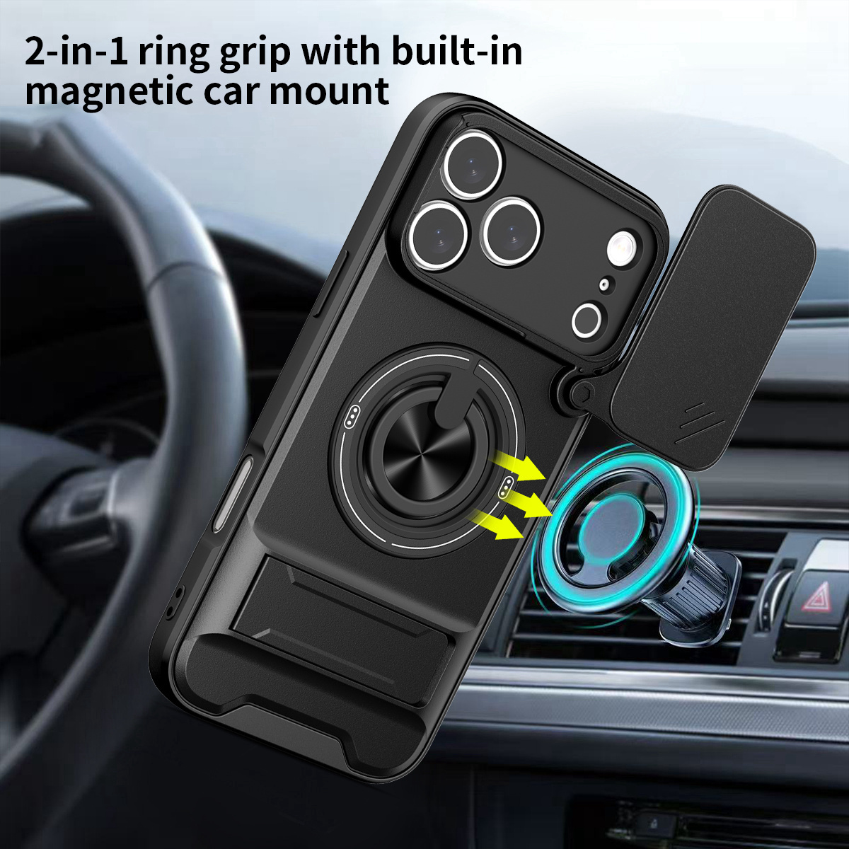 2-in-1 Magnetic Ring & Stand: Built-in strong magnet provides a secure grip and a 360° rotatable stand for hands-free viewing.