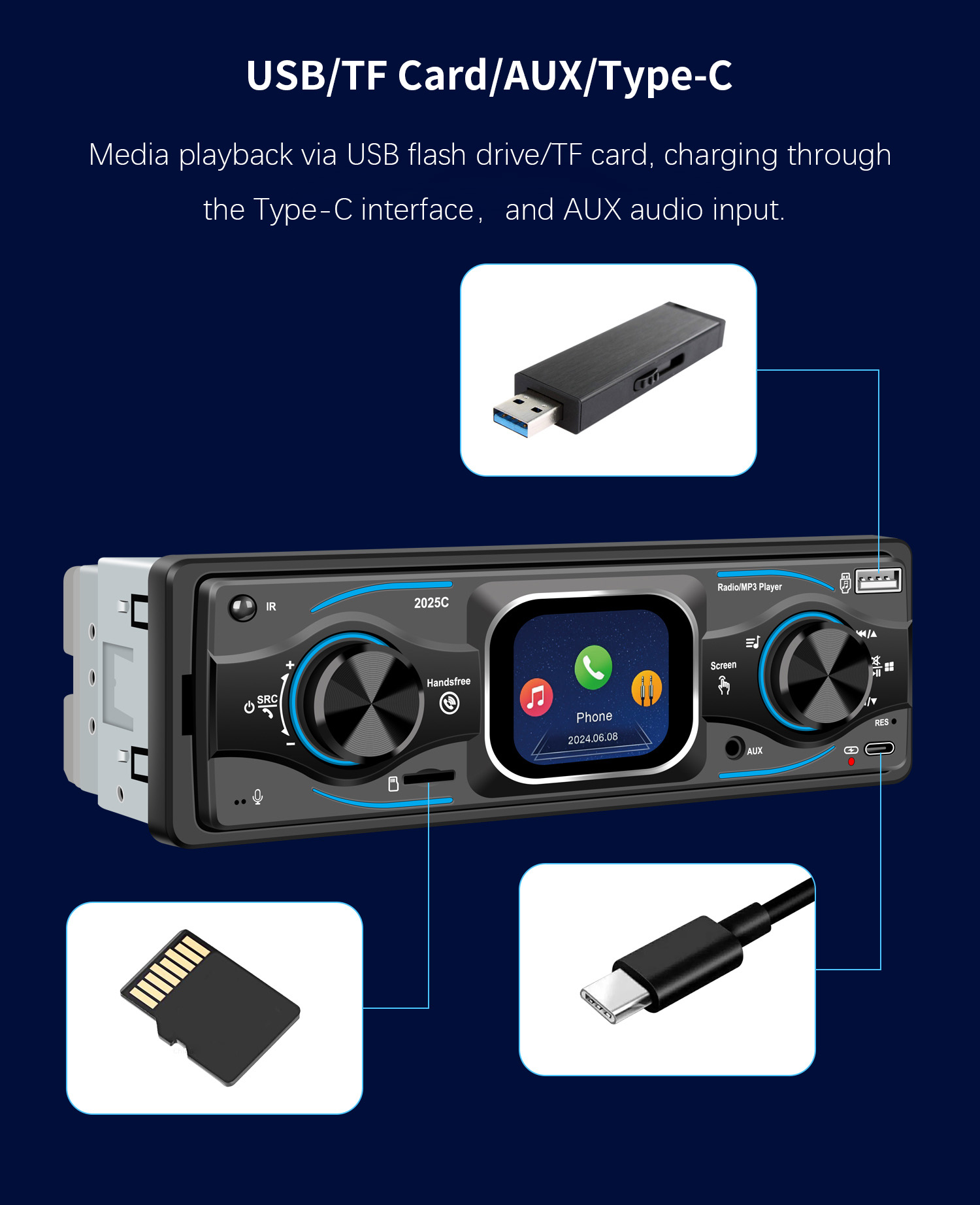 You can also play music from your cell phone, smartphone, tablet or Bluetooth-enabled MP3 player with A2DP support directly through the speakers in the car, without having to copy files or make unnecessary cabling.