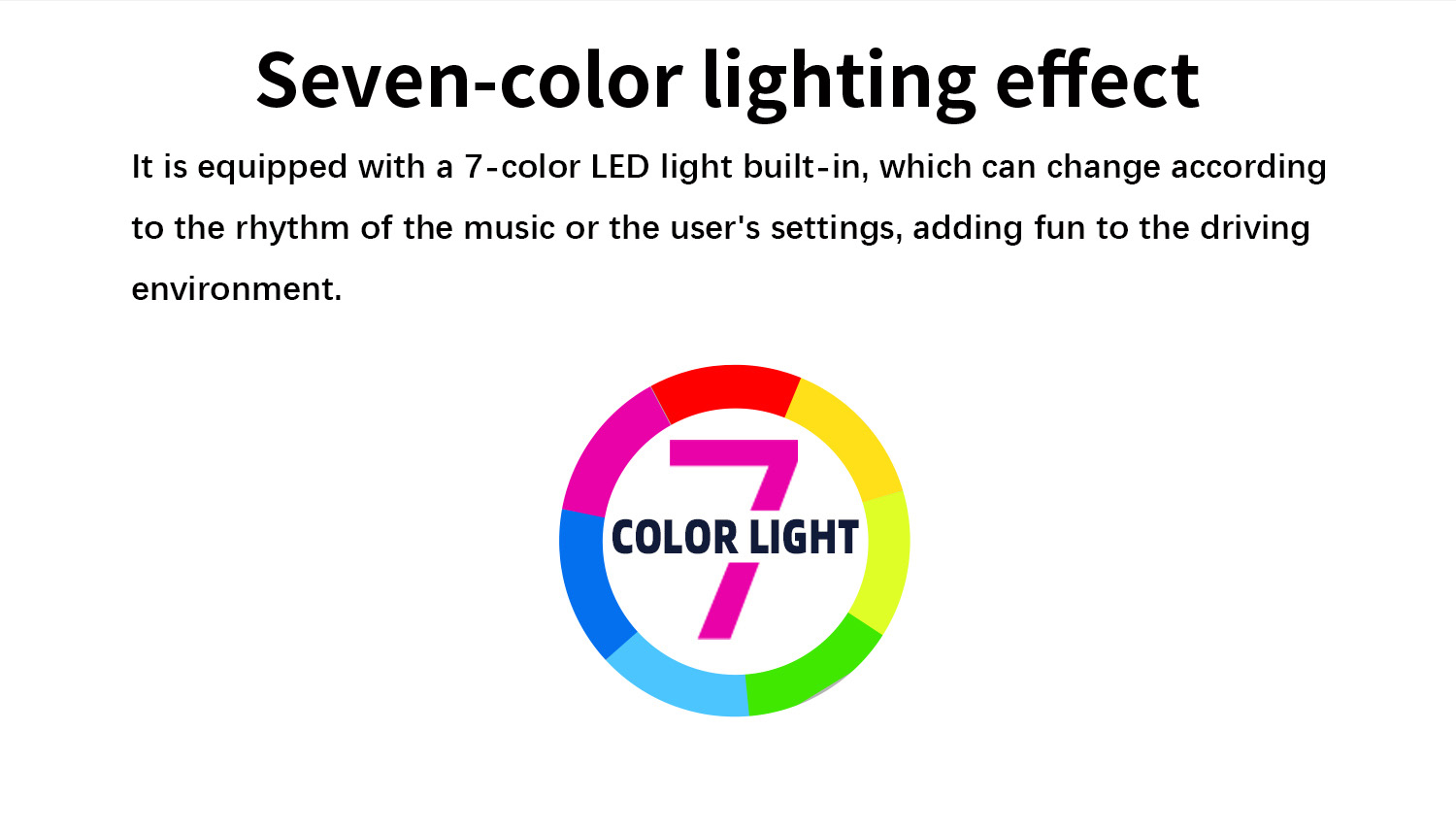 Lighting colors: blue, red, yellow, purple, green, white, turquoise