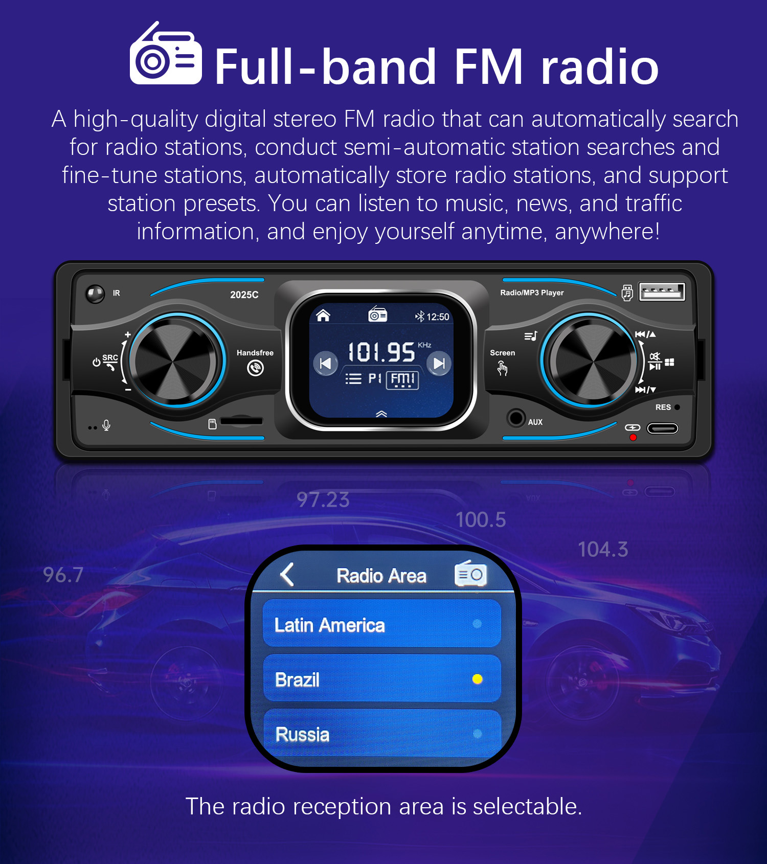 Hands-free system for your mobile phone: So that you can always drive safely and flexibly, this car radio offers you the function of making wireless calls using the microphone on the radio and the speakers in the car. All you have to do is connect your Bluetooth mobile phone to the radio via Bluetooth!