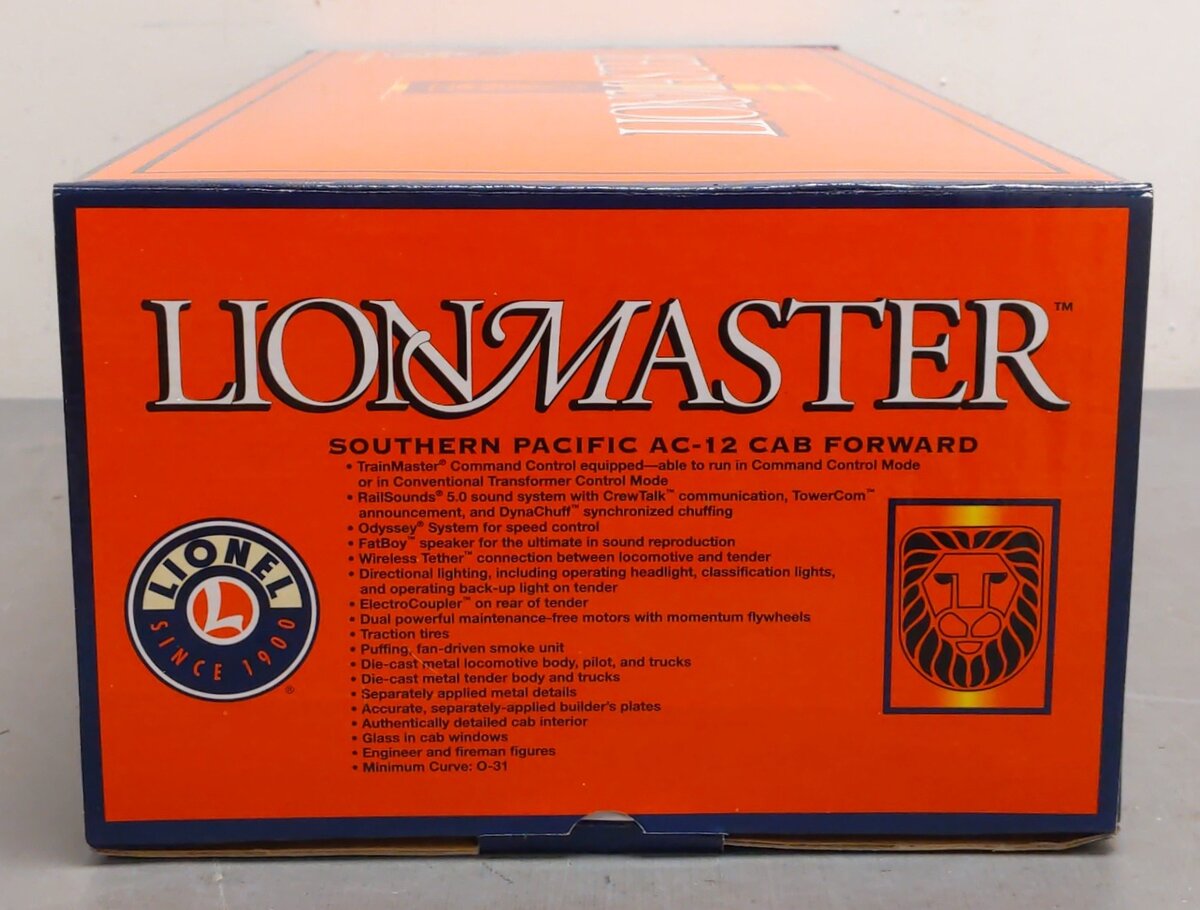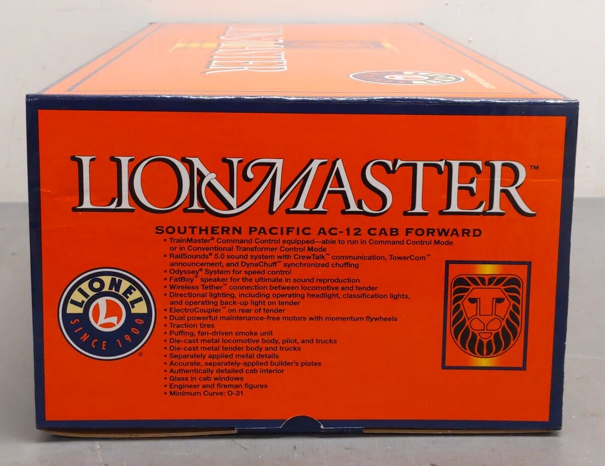 Here is a Lionel 6-11107 LionMaster SP AC-12 Forward Steam Loco & Tender #4276. The popular Lionel AC-12 Cab Forward joins the LionMaster roster! Along with TMCC and the Odyssey System for speed control, this new Lionel model features the unsurpassed RailSounds 5.0 sound system, including the unique air horn. The Cab Forward is designed for maximum performance on curves as tight as O-31. Features include TrainMaster Command Control equipped—able to run in Command Control Mode or in Conventional Transformer Control Mode, RailSounds 5.0 sound system with CrewTalk communication, TowerCom announcement, and DynaChuff synchronized chuffing, Odyssey System for speed control, FatBoy speaker for the ultimate in sound reproduction, Wireless Tether connection between locomotive and tender, Directional lighting, including operating headlight, classification lights, and operating back-up light on tender, ElectroCoupler on rear of tender, Dual powerful maintenance-free motors with momentum flywheels, Traction tires, Puffing, fan-driven smoke unit, Die-cast metal locomotive body, pilot, and trucks, Die-cast metal tender body and trucks, Separately applied metal details, Accurate, separately-applied builder’s plates, Authentically detailed cab interior, Glass in cab windows, Engineer and fireman figure and measures 27 inches long.