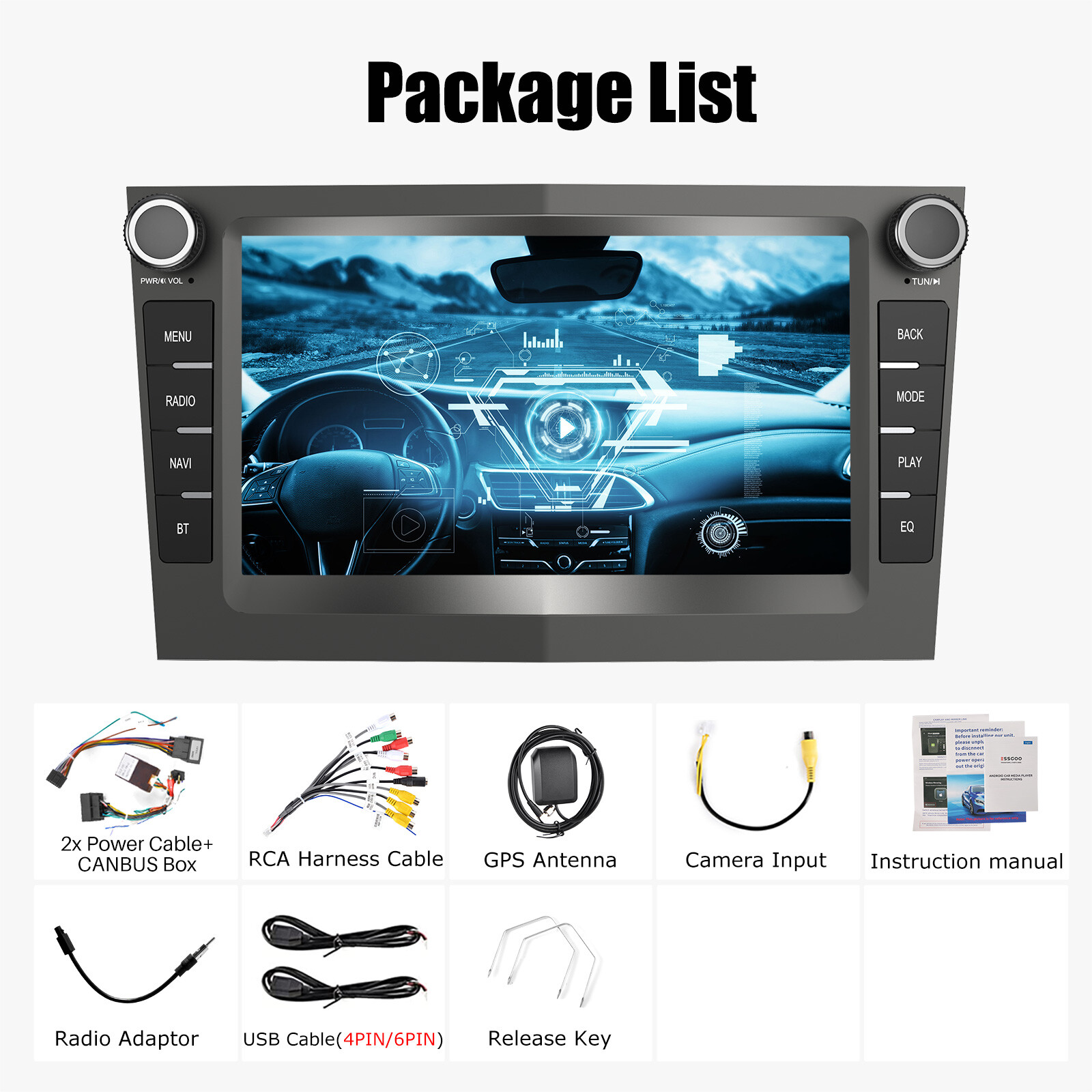 1 x Android car stereo(frame included.--Assembled)