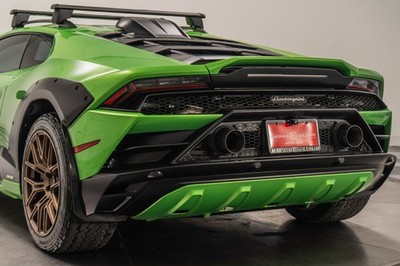 2024 Lamborghini Huracan Sterrato in Verde Selvans over Nero Ade with Verde Fauns interior with only 2,412 miles. This Sterrato is equipped with: 5.2 Liter V10 with 602 horsepower, 7 speed dual clutch transmission, 19 inch Morus forged wheels, black CCB brake calipers, Sterrato body package, predisposition for front lights (driving lights), matte black crossbars, tailpipes in matte black, sport seats with Sterrato trim with laser engraved upholstery, seat belts in Verde, full door panels in carbon fiber, dashboard in full Alcantara, Lamborghini welcome lights, fire extinguisher, aluminum floor mats, cup holder with ashtray, smartphone interface and much more. Original MSRP was $336,837 with over $63,000 in options.