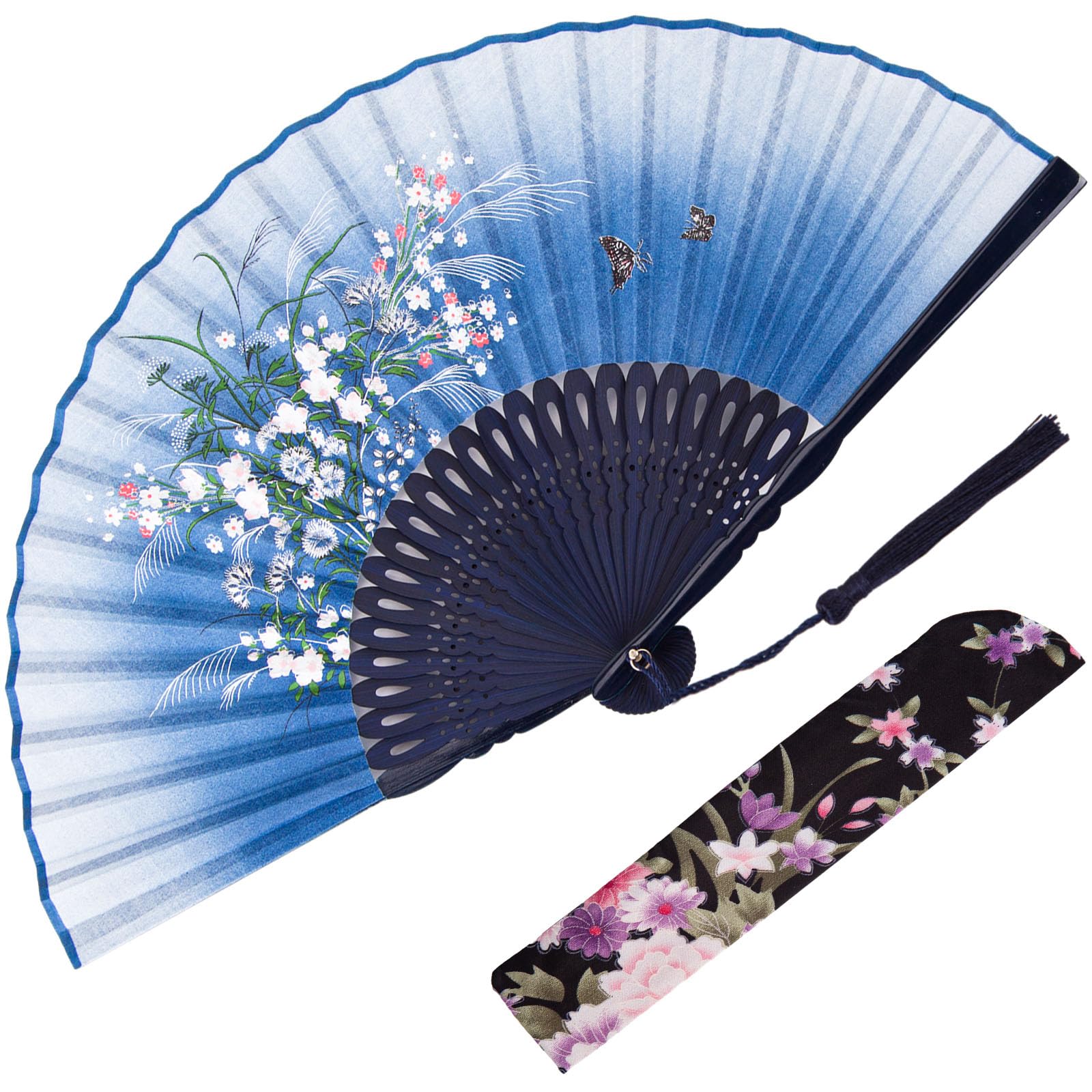 Elegant Aesthetics - The folding hand fan boasts intricate printing on its surface, resulting in a visually stunning and vibrant color palette that enhances its artistic appeal. This design is a testament to its artistic quality and value. Additionally, the fan comes with a matching floral-patterned fan cover, which serves not only as a storage solution but also as an enhancement to its overall elegance.