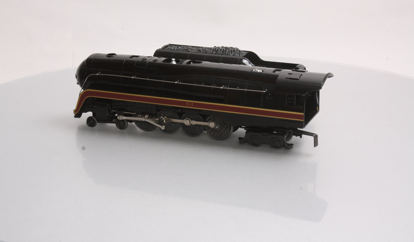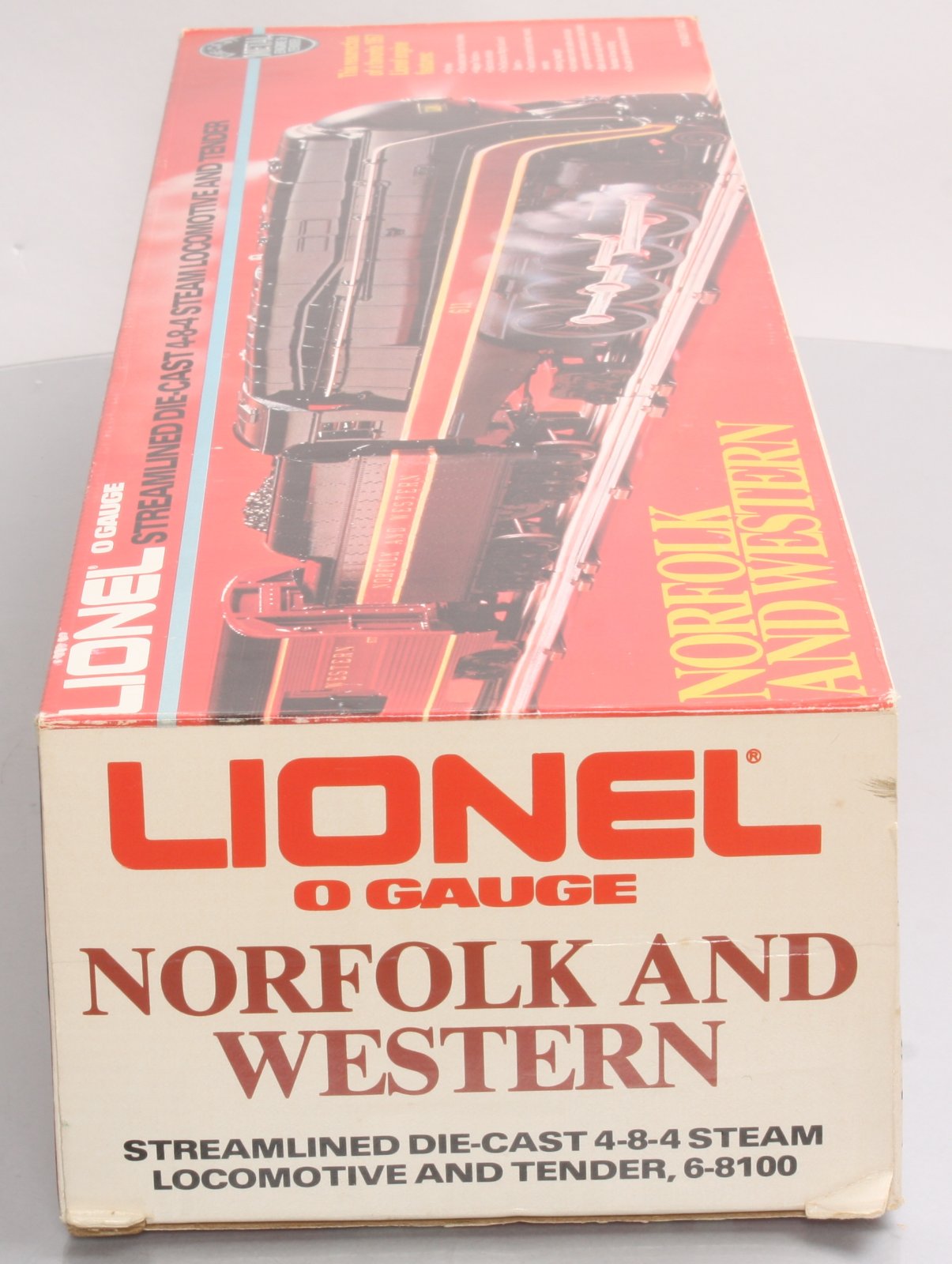 Here is a Lionel 6-8100 O Gauge Norfolk & Western 4-8-4 Steam Locomotive & Tender #611 from 1981. This engine is a reissue of the classic Postwar 746 and is one of the most popular engines in the MPC Era. Its features include a die-cast construction, an open frame motor, Magnetraction, an operating smoke unit, an operating headlight, electronic whistle and Sound of Steam, and a great paint scheme. The tender is plastic construction and die-cast 6-wheel trucks.