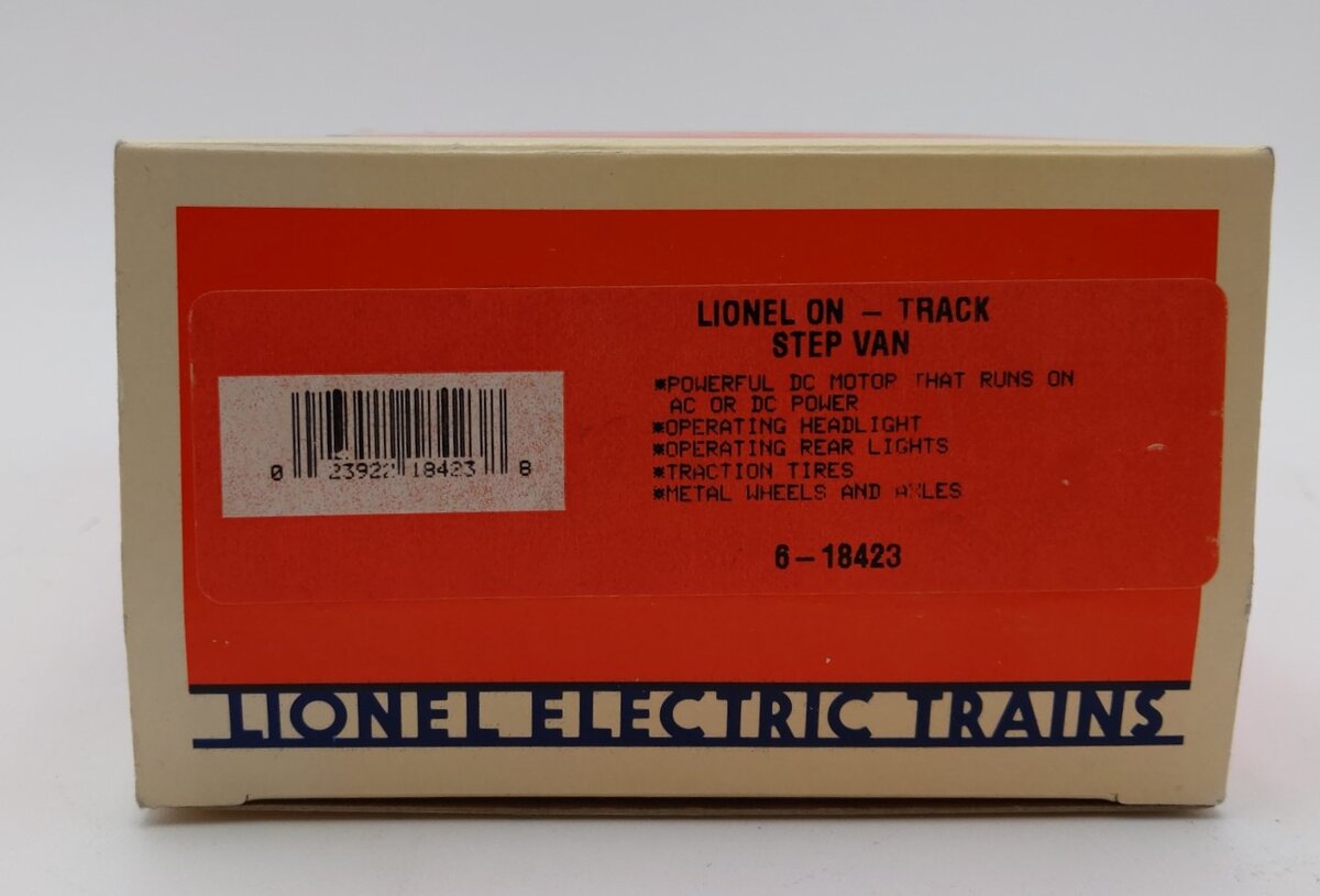 Here is a Lionel 6-18423 O Gauge On-Track Motorized Step Van. Features include a powerful DC motor that runs on AC or DC power, an operating headlight, operating rear lights, traction tires, metal wheels and axles.