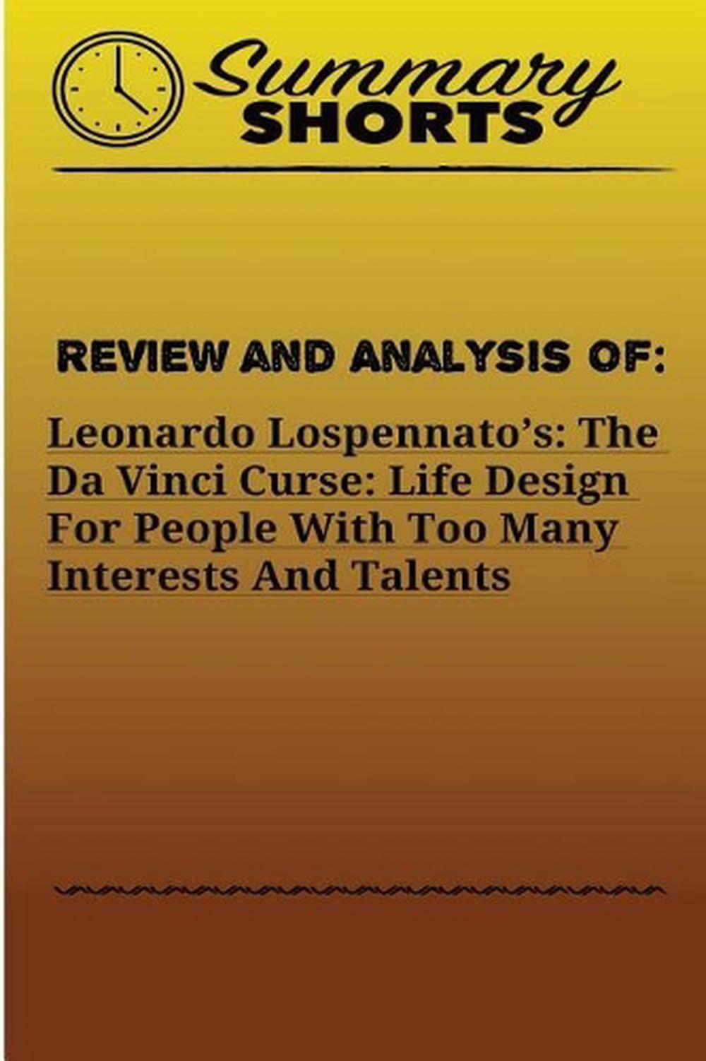 Description We all know who Leonardo da Vinci is, he was one of those geniuses that could do anything, he was an architect, a sculptor, a painter; amongst other things. He didn't really specialize in one particular field, back in his day that was not an issue, it was encouraged to have your hand in a little bit of everything. Today, we have become increasingly more specialized, and because of that people who have multiple interests and multiple talents cannot find their way as easily. In his book, the da Vinci curse, Leonardo Lospennato gives clues and tips as to how a person with multiple talents can live in an increasingly specialized world. Enjoy!