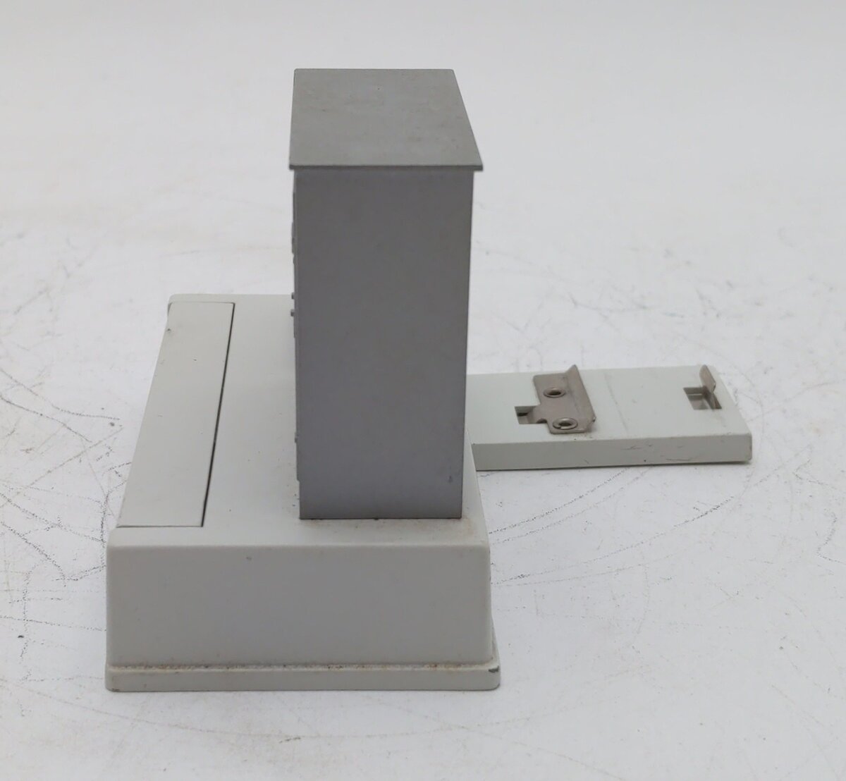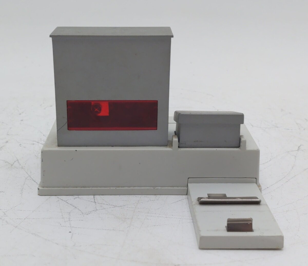 This is a Lionel 6-14111 O Gauge 153IR Controller. Lionels newest offering in the world of layout accessory control is the 153IR Controller. Using infrared, the 153IR sends a signal across your tracks. When the signal is reflected, the accessory to which the 153IR is connected begins to operate. Controls for time delay (from zero to five seconds) and signal sensitivity give the 153IR tremendous flexibility in controlling the exact moment you want your accessory to operate. Designed into a realistic, die-cast track-side building, the 153IR looks at home on any layout. Several can be placed around your layout and won't look out of place like some plastic models on the market today. Powered by a removable track clip or from an auxiliary power supply, the 153IR is a model of flexibility and control. Features infrared sensors detect passing trains and activate connected accessories, and time delay adjustment knob (from 0 to 5 seconds). It measures 5 inches x 4 1/2 inches x 3 1/2 inches.