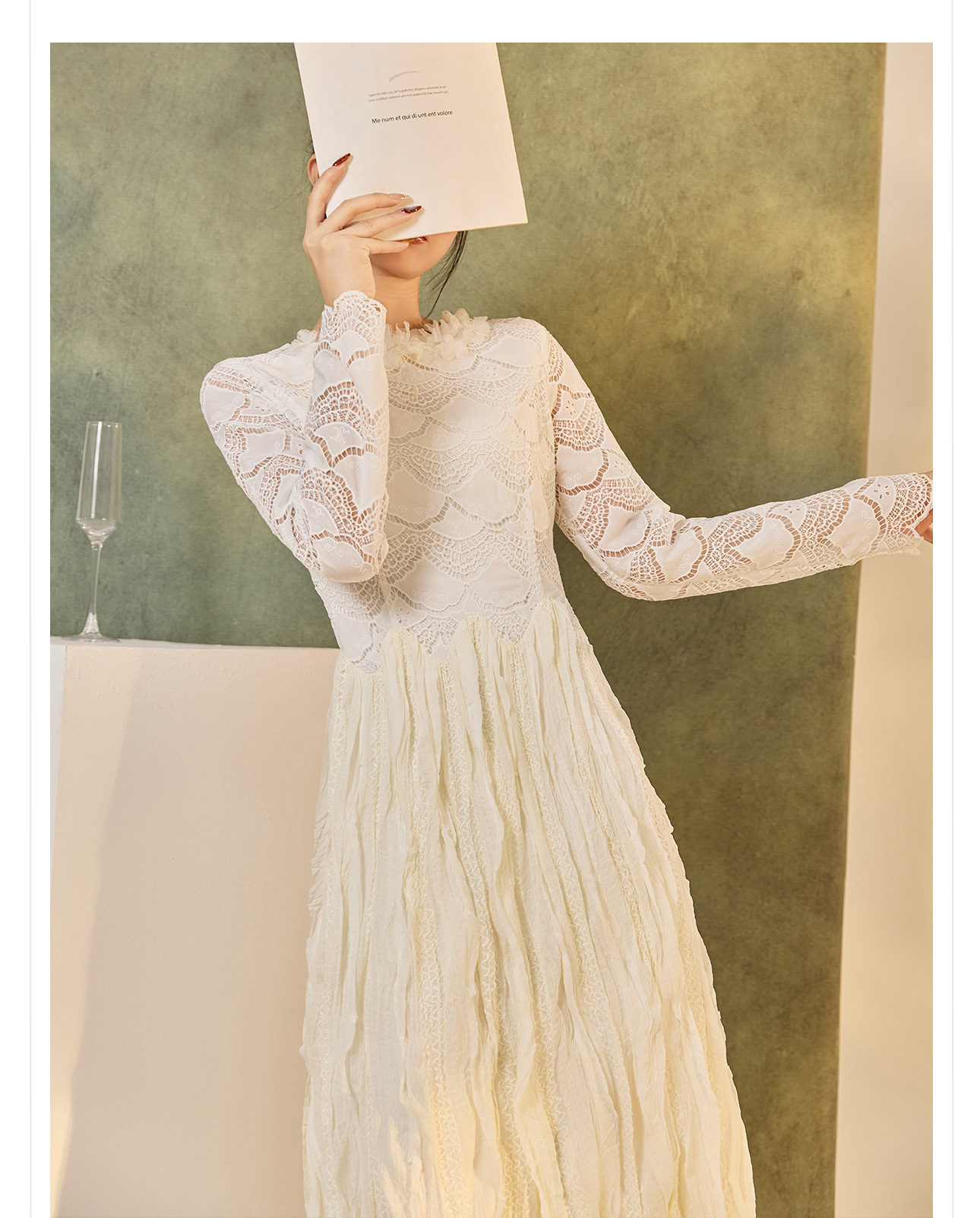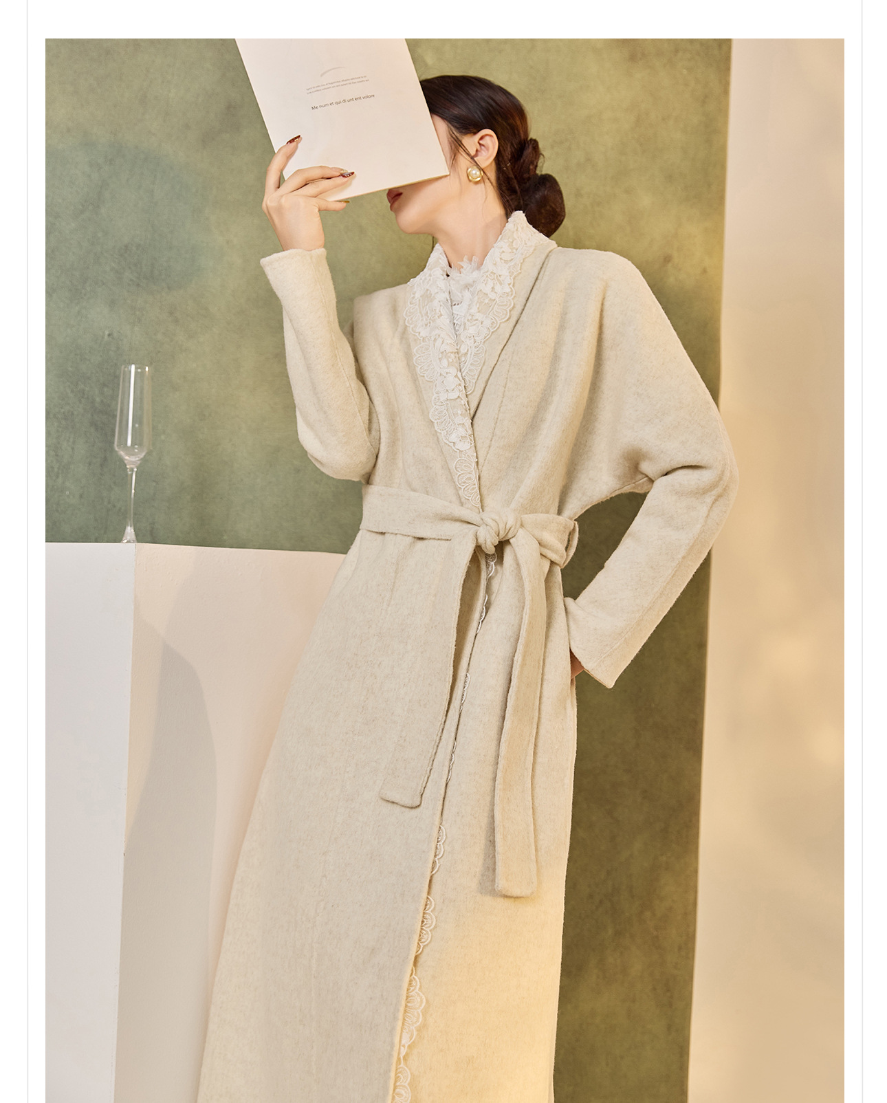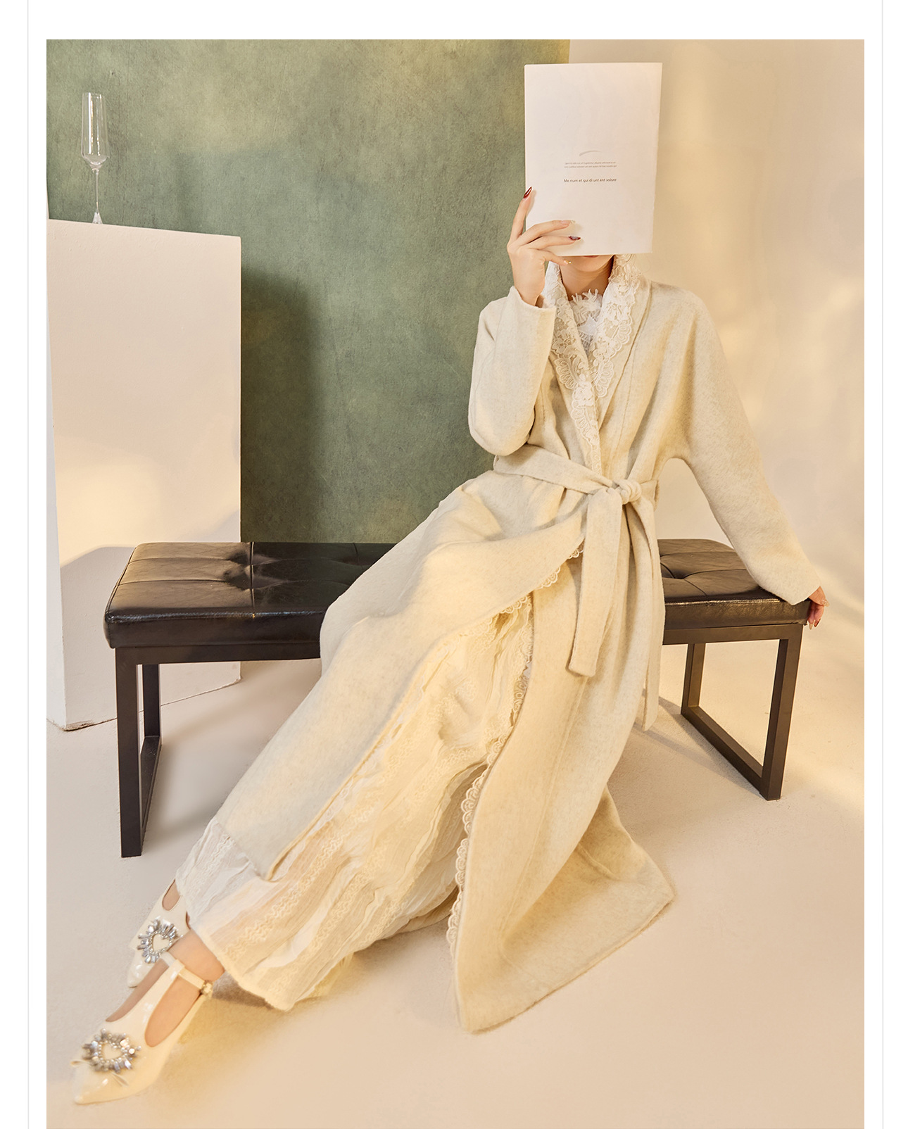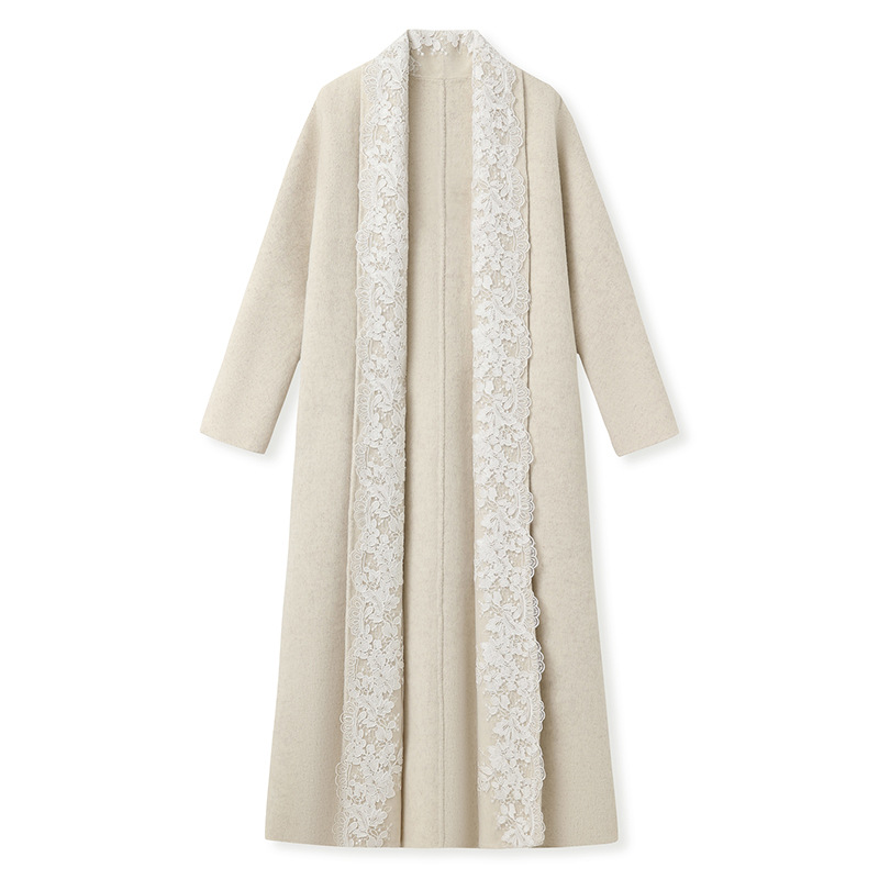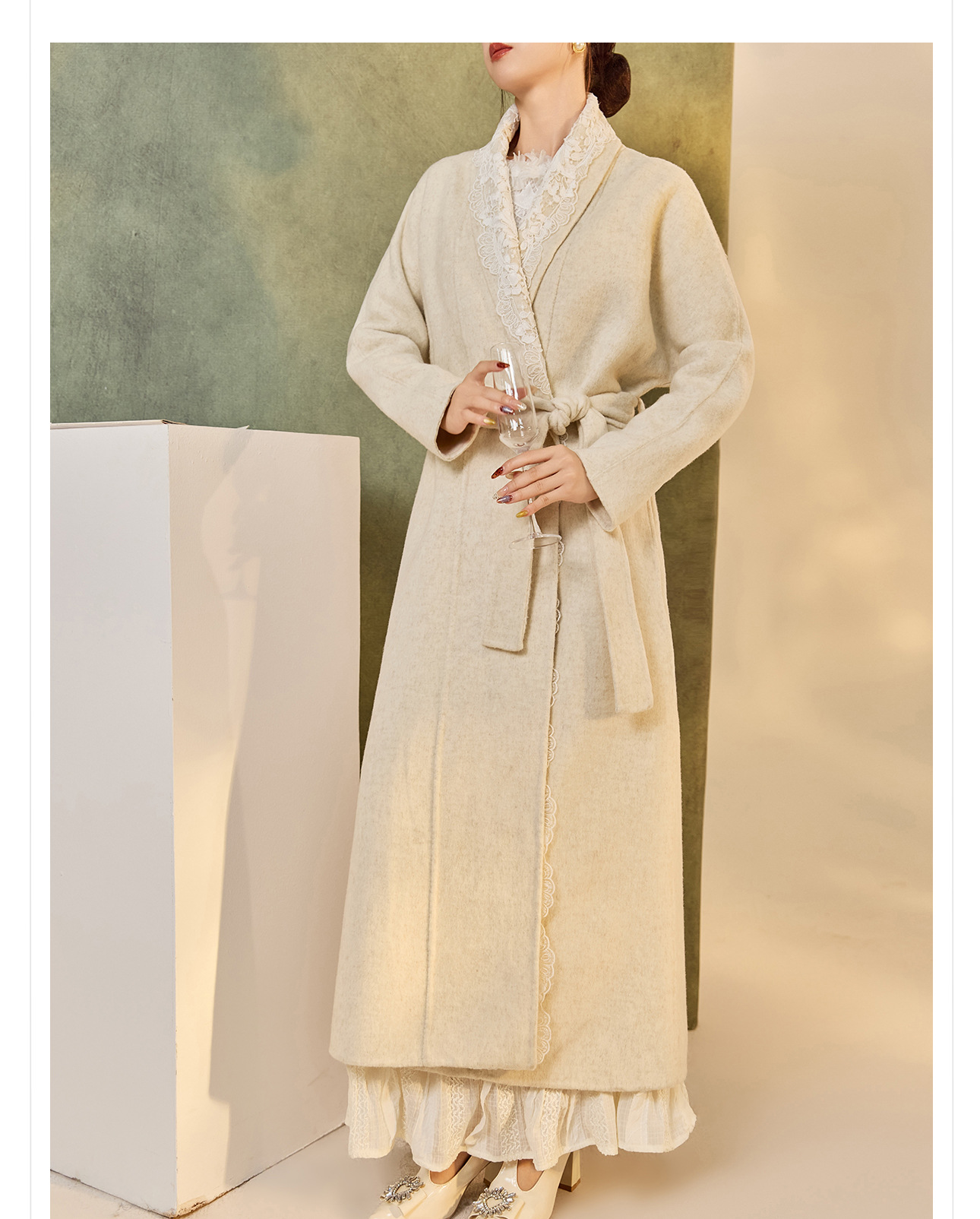 Winter Womens Cashmere Coat Chinese Style Lace Wool Coat Pleated Long Skirt Sets