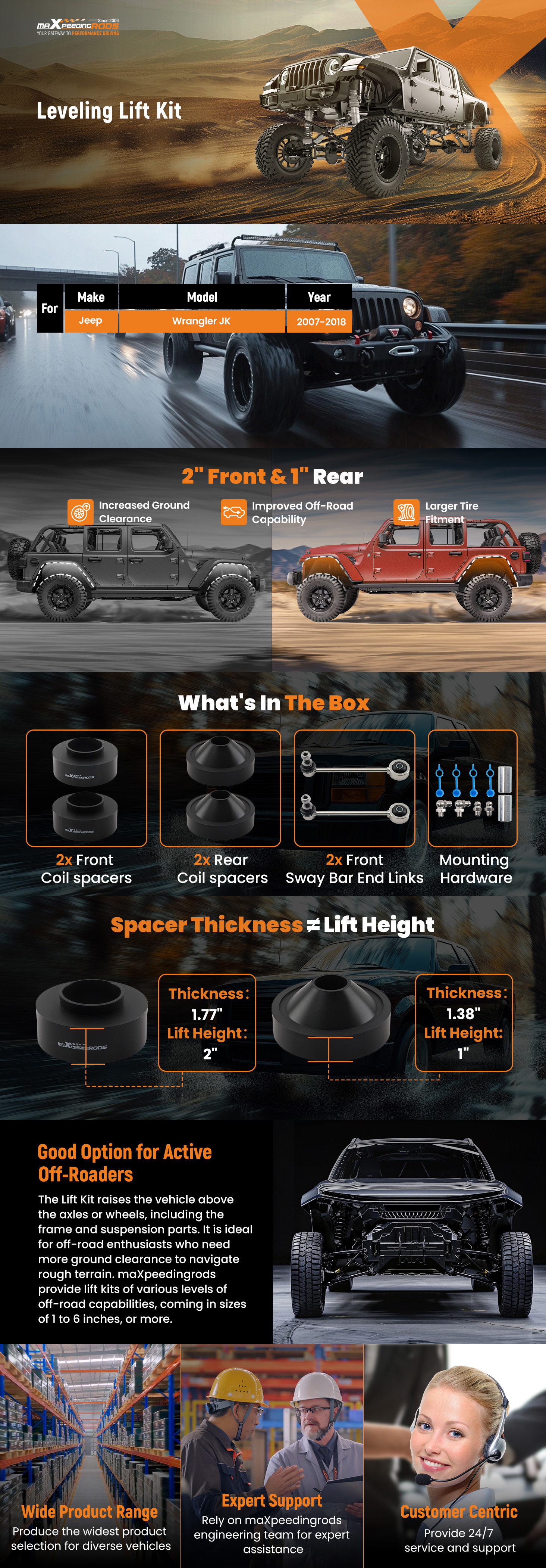Spacer Thickness: F 45mm /1.77" R 34mm/1.38"