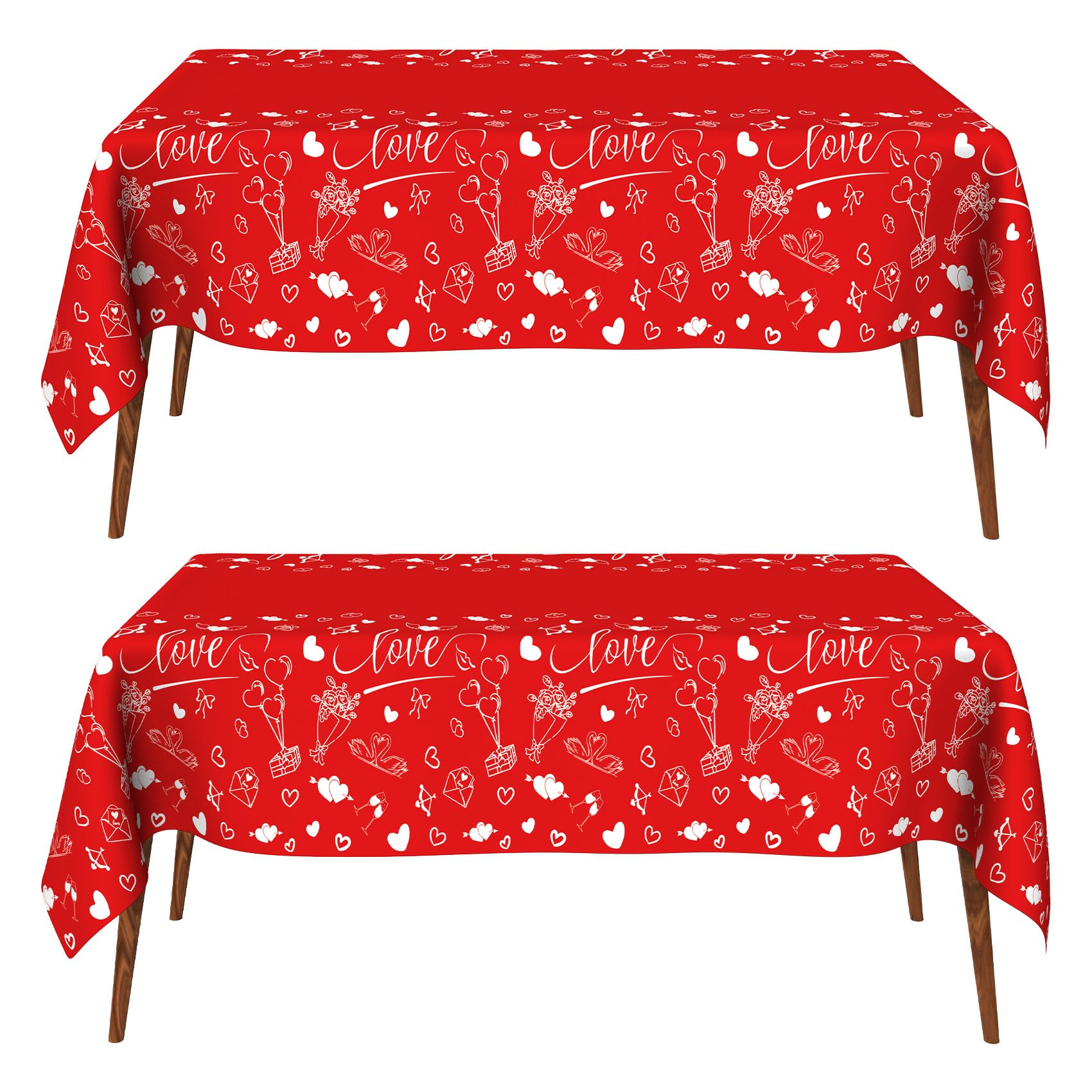 Valentine'sValentine's Day Tablecloth, 2PCS Disposable Plastic Valentines Tablecloth, 54x108Inch Red Valentine Tablecloth Rectangle Love Heart Table Cover for Valentines Day Wedding Anniversary Party DecorationsProduct Specifications: Large Size: 54" x 108" Valentines plastic disposable rectangles tablecloth will cover up to an 8-foot table. Material: quality plastic Exquisite Valentines Patterns Disposable and Waterproof Widely Used: Our Plastic Valentines Tablecloth is great for any Valentine's Day party decorations, wedding parties, anniversaries, birthday parties, bridal shower, engagement, wedding parties, Office events, school, reunion, holiday and many indoor or outdoor occasions.Packages Include:2/3 Pack Valentine's Day Tablecloth