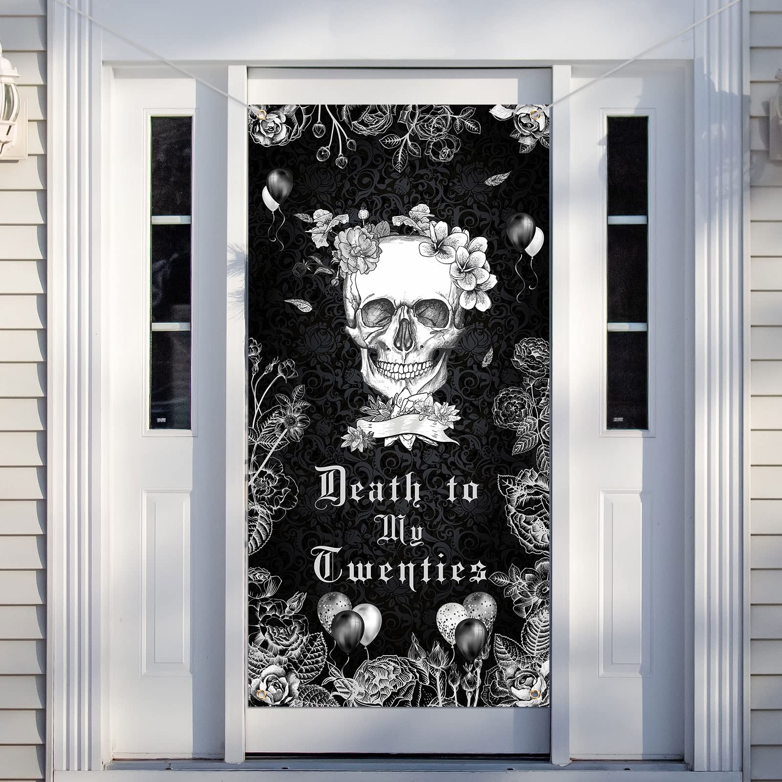 Stylish 30th Skull Design: these 30th birthday decorations adopt neutral black and white as the main color, the realistic skull is surrounded by balloons, flowers and other aesthetic elements, making your door decoration more attractive, whether they are on the door or in the garage, they will be nice choices