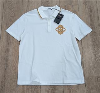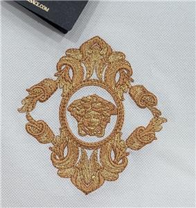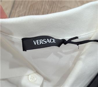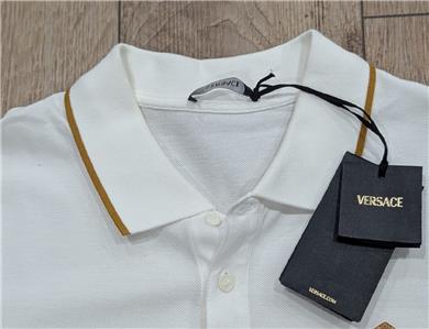 - Versace solid piqué polo shirt enhanced with golden embroidery details