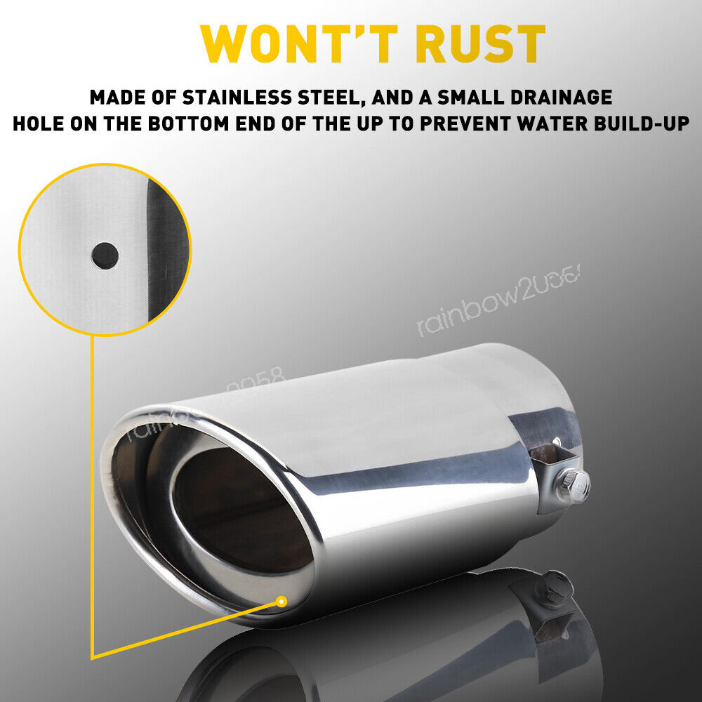 1.Please measure the outside diameter of your exhaust pipe before purchase, otherwise our product will not fit your car. This tips fit only 1.4-2.1inch inlet tailpipe