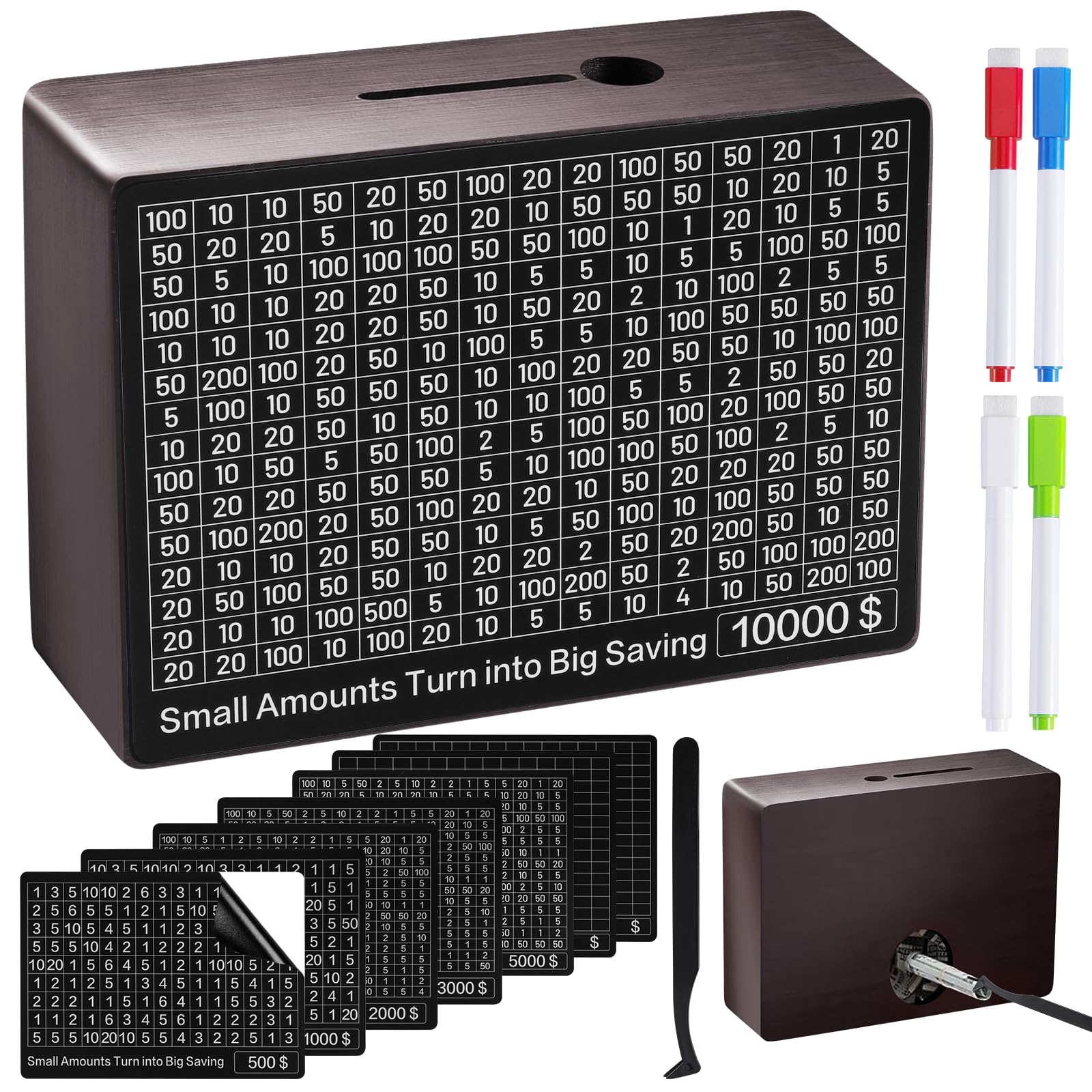 Qimshemi Money Saving Box, Piggy Bank Savings Challenge Box Medium, Brown