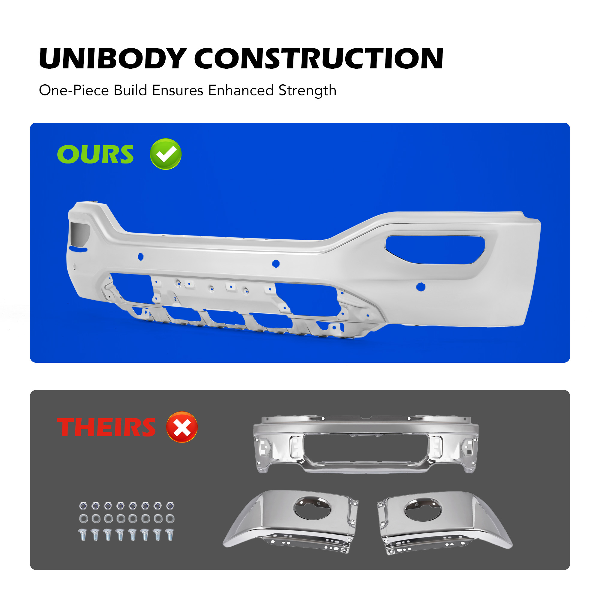 Eye-Catching Chrome Finish: The mirror-like chrome finish not only gives your truck a striking appearance while providing enhanced protection against oxidation and punishing daily use