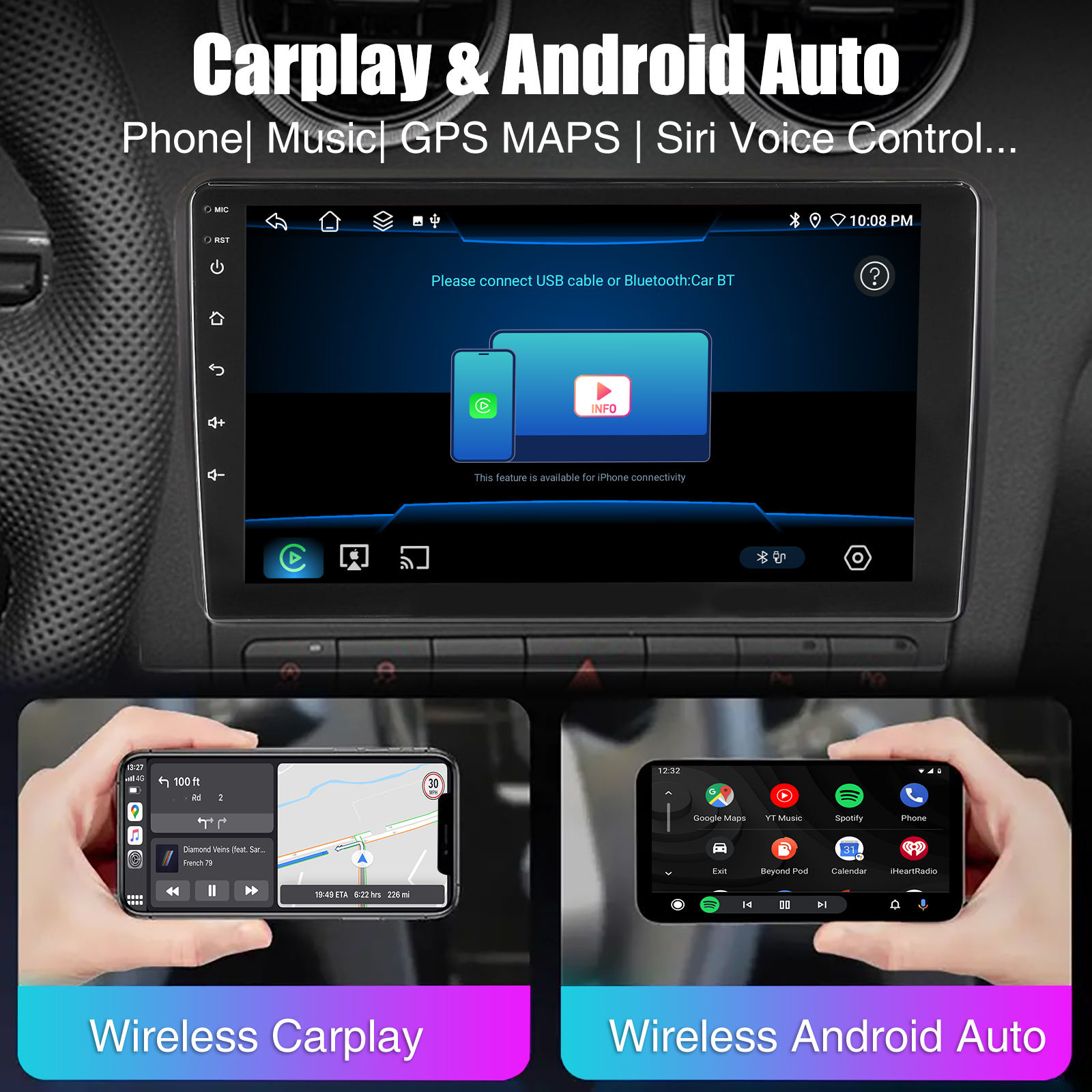 RDS/FM Radio & Bluetooth: Built-in Bluetooth 5.0 with A2DP, supports Bluetooth hands-free calling, phone book call log downloading, music audio streaming. Built-in microphone to make calls clearer. FM/RDS radio can preset 30 popular stations with high stereo quality, it can search for channels fully automatically, semi-automatically and with fine tuning.