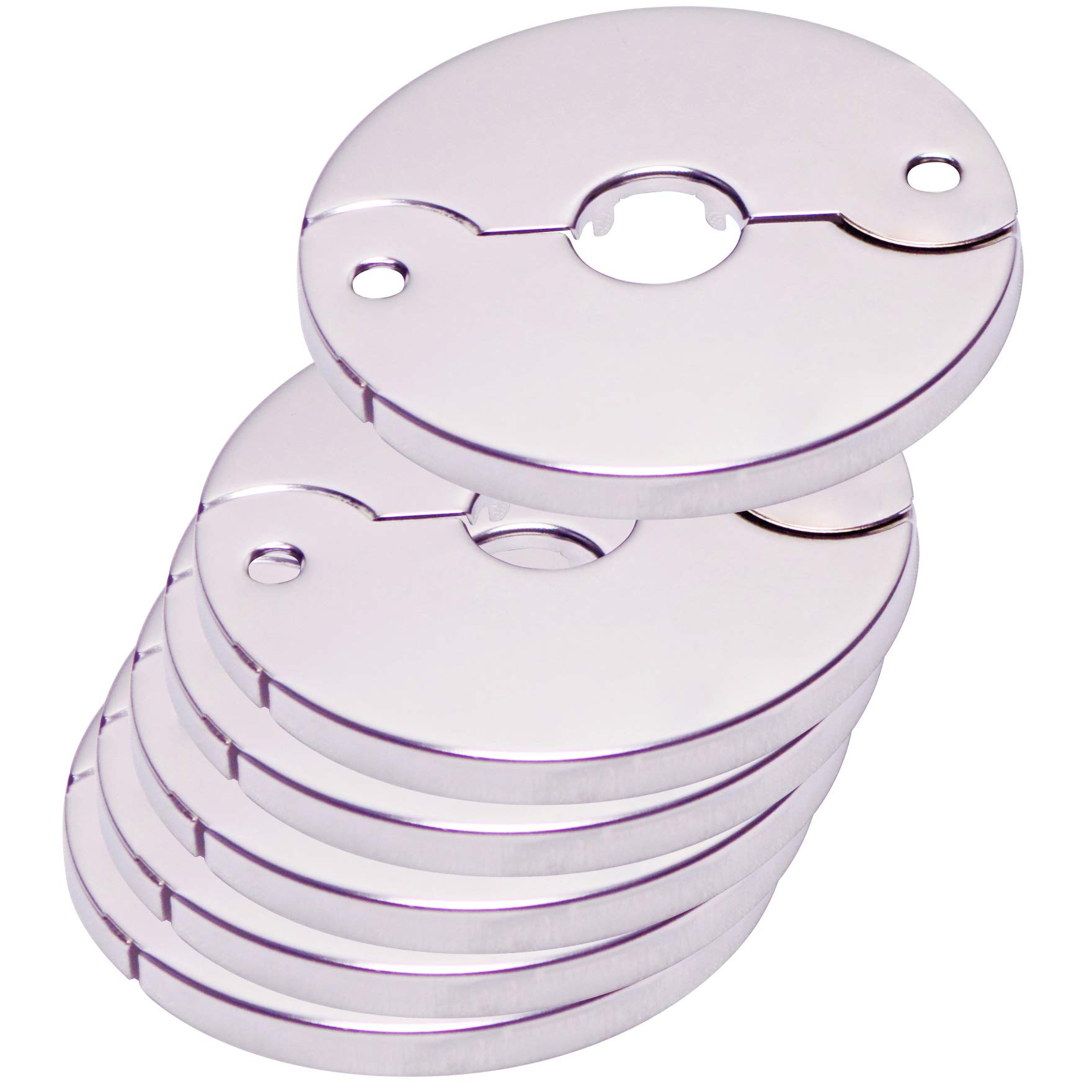 Floor and ceiling plates also known as escutcheon plates are used to cover and close the gap between the outside diameter or the pipe and the inside diameter of the wall, floor, or ceiling opening to avoid damage and leakage. This Floor and Ceiling Plates are designed for use in tubular drain applications. Please measure your pipe accordingly and make sure that it matches the measurements on this description. It Fits 3/8 inch IPS (3/8" Outside Diameter) Galvanized Pipe or 1/2 inch (1/2" Outside Diameter) Copper Pipe. Hole diameter is 0.625 inch (15.88mm) and outside diameter is 2.83 inches (72mm). It also has a wide range of application. You can install it for your faucet, toilet, sink, radiator, heater, pvc pipes, gas pipes, and many more. Experience a hassle free installation with no expert plumbing skills or tools needed. Simply split the flange to fit the pipe circumference and close the ends together to lock and protect the pipe and wall, floor, or ceiling opening from any damage and leakage SPECIFICATIONS Hole Diameter - 0.625 inch Outside Diameter - 2.83 inch Chrome Finish