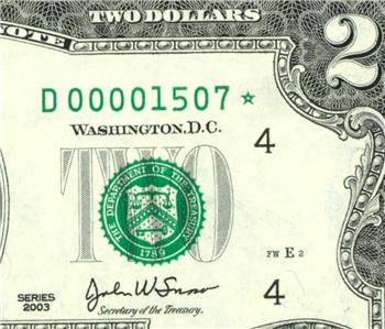 Very Fine (or VF): A VF note should have nearly full remaining crispness, although several folds, wrinkles, or other signs of circulation may be present. Mild soiling might be apparent, but it should not be serious. No tears, stains, or other impairments should be readily apparent, and the note should still have nice eye appeal. Several minor pinholes may be visible when the note is held to a light. The corners may be slightly frayed or slightly rounded at this grade level, but the paper should retain nearly full crispness and there should be no loss of color in the design.