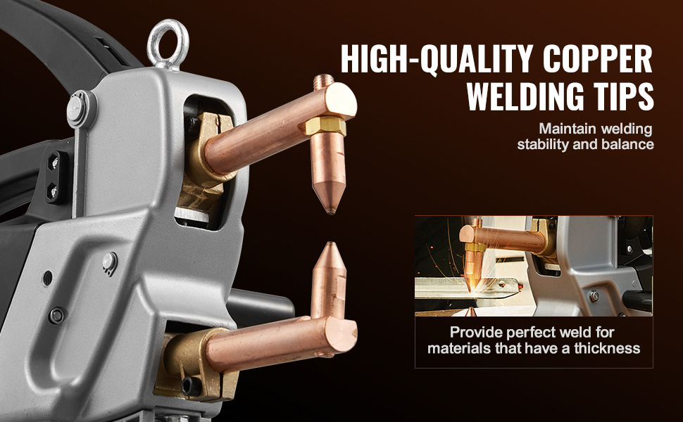 Alte prestazioni: progettata per lamiere di acciaio fino a 2 mm + 2 mm di spessore (come l'acciaio al carbonio), questa saldatrice a punti portatile è per varie attività di fabbricazione di metalli. (Non adatta per alluminio e acciaio inossidabile)
