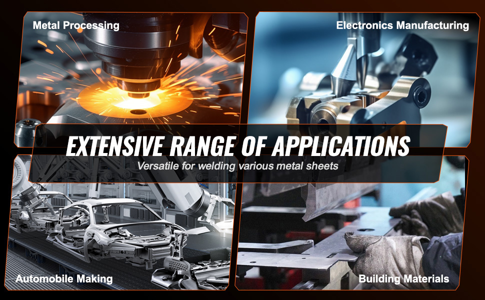 La pistola per saldatura portatile VEVOR è ampiamente utilizzabile in vari scenari di saldatura di lamiere, tra cui la lavorazione dei metalli, la produzione di componenti elettronici e la produzione automobilistica.