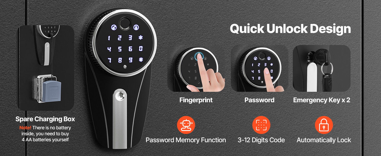 - Smart Lock: la tastiera touch a 9 cifre e il riconoscimento delle impronte digitali garantiscono un accesso rapido. La password può essere impostata da 3 a 12 cifre, con una funzione di blocco automatico per una maggiore tranquillità