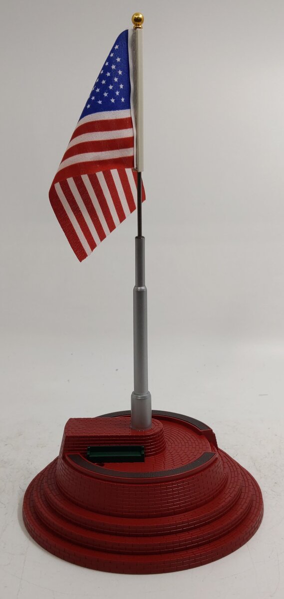 This is a MTH 30-9103 O Operating American Waving Flag. When operated the flag waves as if there was a strong breeze on your layout. This item features a lightweight cloth flag and ABS detailed base.