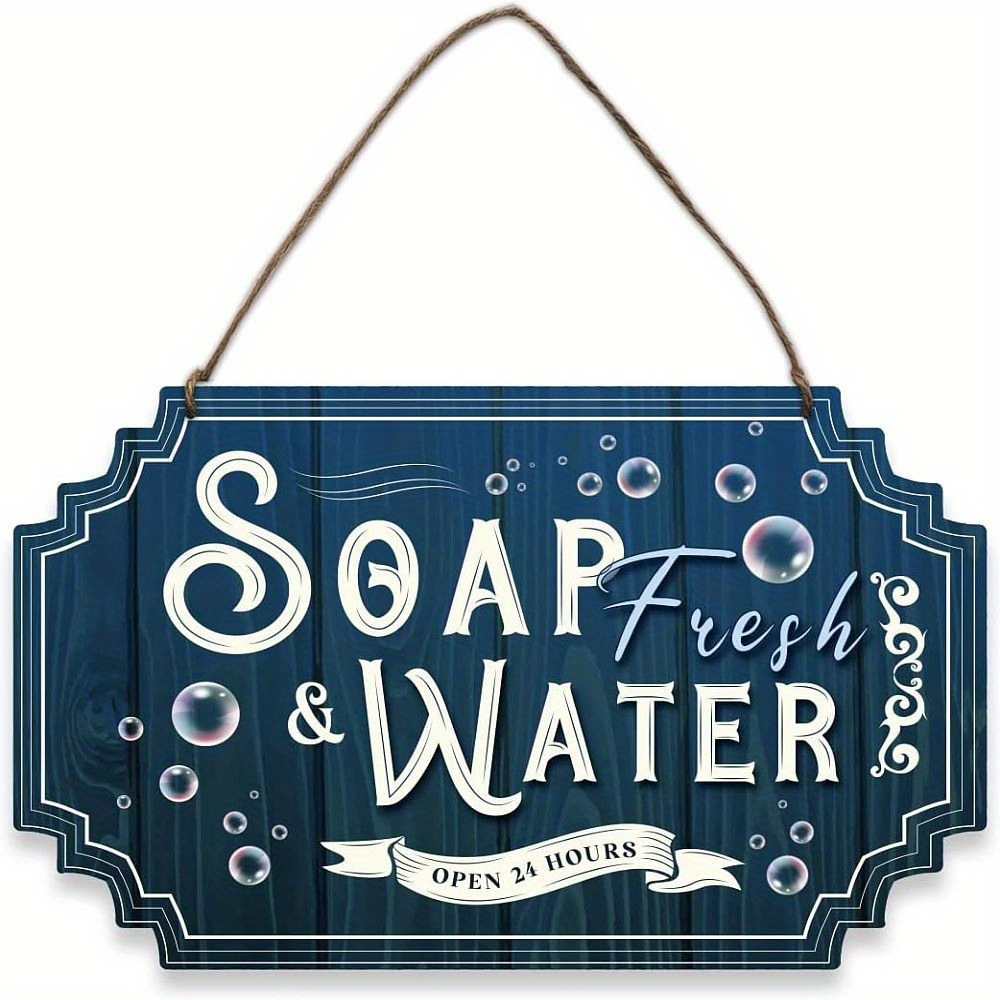 Wood Hanging Wall tions, with Jute Twine, Rectangle with Word Soap Water Pattern, Prussian Blue