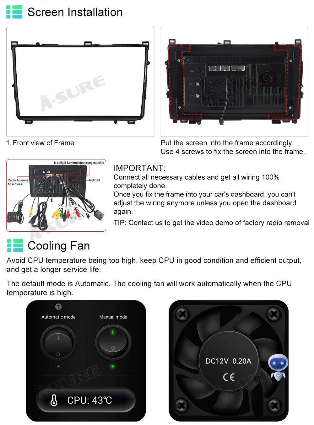 RDS/FM Radio & Bluetooth & ASP Sound: Supports Bluetooth 5.0, with built-in microphone so you can make hands-free calls while driving. Support access to phone book, music playback interface, etc. RDS supported. You can save 18 FM radio stations. Built-in ASP chip.Supports 32-band EQ setting, which can be adjusted according to your personal preference. Which is very similar to your original sound. 4 x 45W amplifier, surround sound and subwoofer output