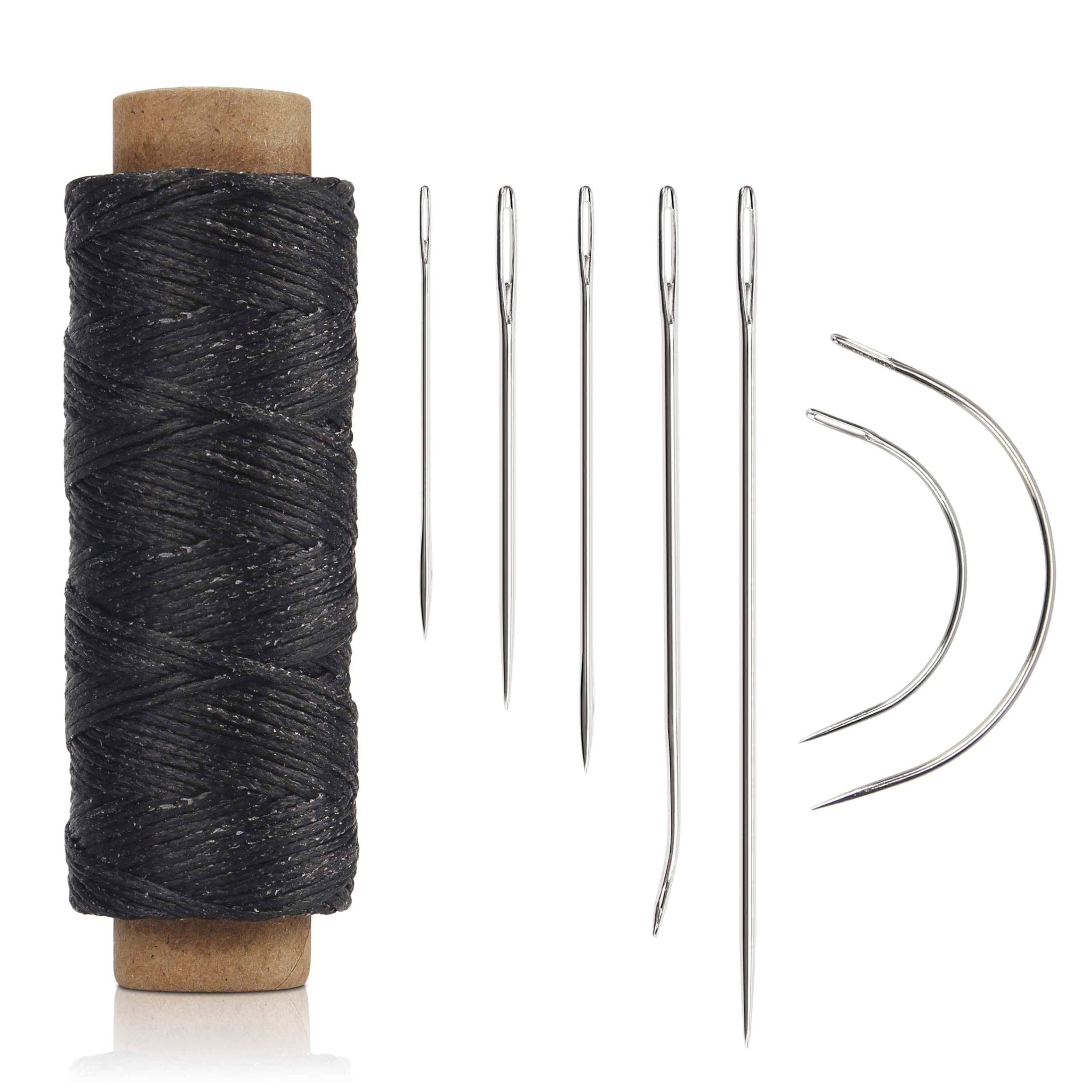 This Lusecarl Waxed Thread is a high-quality thread that is perfect for a variety of sewing projects, including leather, canvas, and upholstery. It is made from polyester and is waxed to provide a strong and durable thread that will not break easily. The thread is also treated with a special lubricant that makes it easier to sew through thick materials, such as leather. The 55 yards of thread are enough to complete most sewing projects, and the hand sewing leather sewing thread and needle kit is a great addition to any sewing kit.The Package Includes:1 x roll of 55 yards suture waxed thread7 x leather duty leather sewing needleProduct Specification:Wax Thread:Size: 50m/55 yardsColor: black, white, khaki, natural, coffee, greyMaterial: polyester, steel carbonSuture Needle:Size: 4.5cm/1.77in, 5.2cm/2.05in, 5.8cm/2.28in, 7.5cm/2.95in, 8.7cm/3.43in , 3cm/1.18in, 4.6cm/1.81inMaterial: steel carbonFeatures:1. The surface of the suture needle is smooth and beautiful, not easy to fade, and can be used for a long time; the wax thread is not easy to break.2. Suture tools are a good gift, which can be given to friends or family members who are beginners or craft lovers.3. Attention, please put the suture needle out of the reach of children, so as to prevent children from being injured.