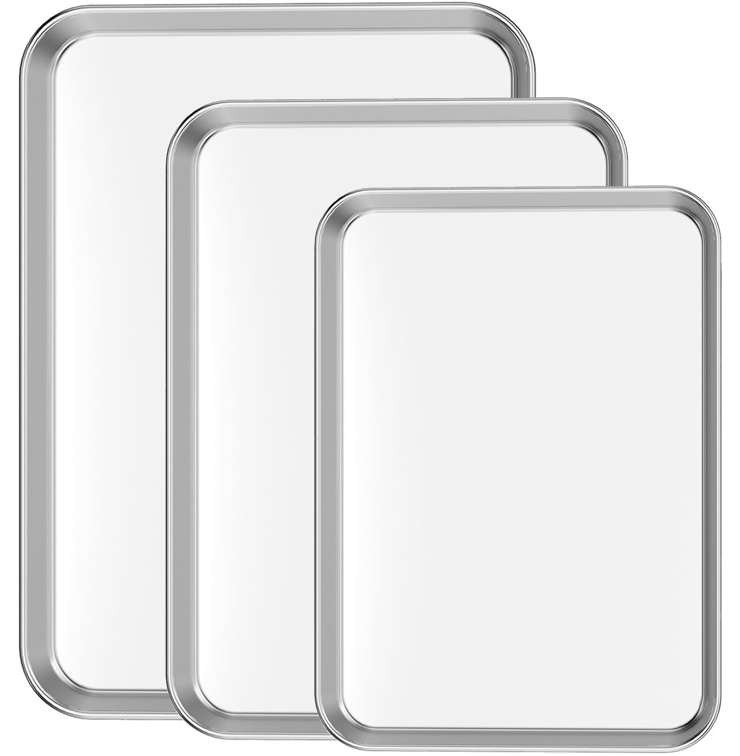 Assorted Sizes: Set of 3, Large 16L x 12W x1H inch, Medium 12L x 9W x 1H inch, Small 10L x 8Wx 1H inch, perfect to be used as cookie sheet or baking sheet for your regular oven and toaster oven