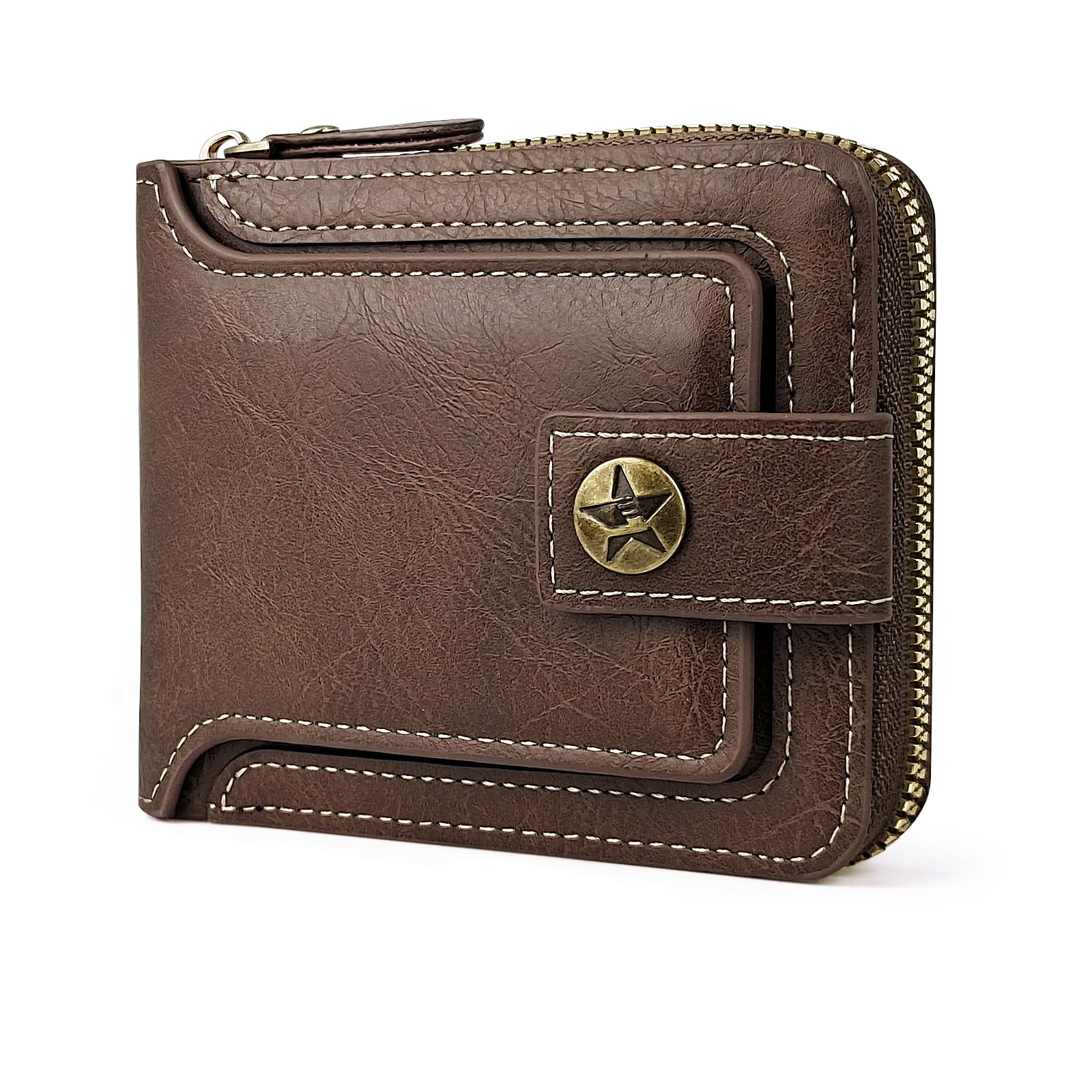 Snap and Zipper: DesignThe surface of men's wallet leather has a simple retro snap and a hardware zipper, which can effectively prevent the items stored in your wallet from slipping or losing, which is very fashionable and practical