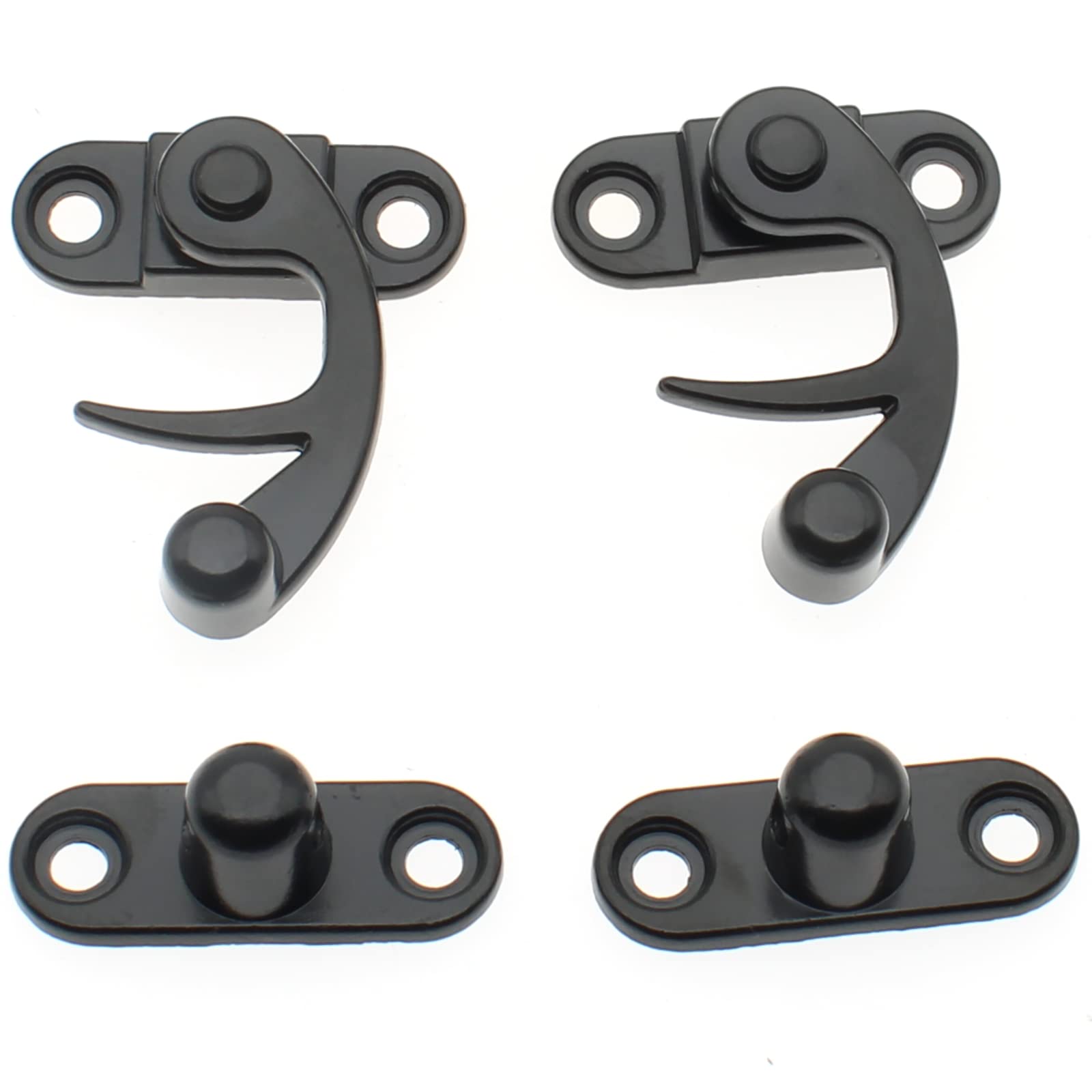 OZXNO Antique Right Hook Hasp Latch is the ideal accessory for jewelry box, cabinet door, vintage case, wooden chests, suitcase, toolbox and so on.Specification:Style: Swing Arm Horns Clasp LatchSize: 33 x 29 x 8 mm / 1.4 x 1.1 x 0.3 inchMaterial: Zinc Alloy, bronze-platingColor: BlackPackage Includes:4 pcs Retro Right Hook Hasp Latch16 pcs mounting screws