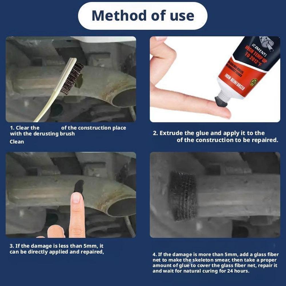 Car Exhaust Pipe Repair Glue for Motorcycle Auto Pipes Silencer Seal Welding Leak Repair High Temp Adhesive for Muffler Tailpipe