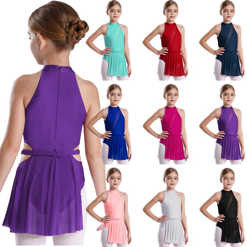 Girl’s sleeveless dance dress with sheer mesh patchwork and cutout design makes your child look more charming.