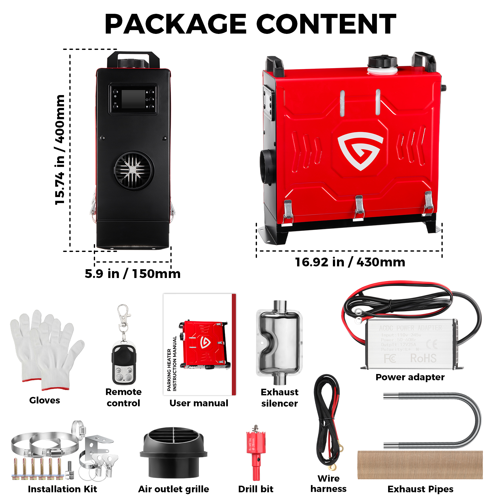 - Fast Heating: With a power output of 8 KW, it heats spaces of 215-269 ft² (20-25 m²) within 10 minutes. Efficiently operates in temperatures from -40°C to +50°C, providing 4700-17000 BTU of heat.