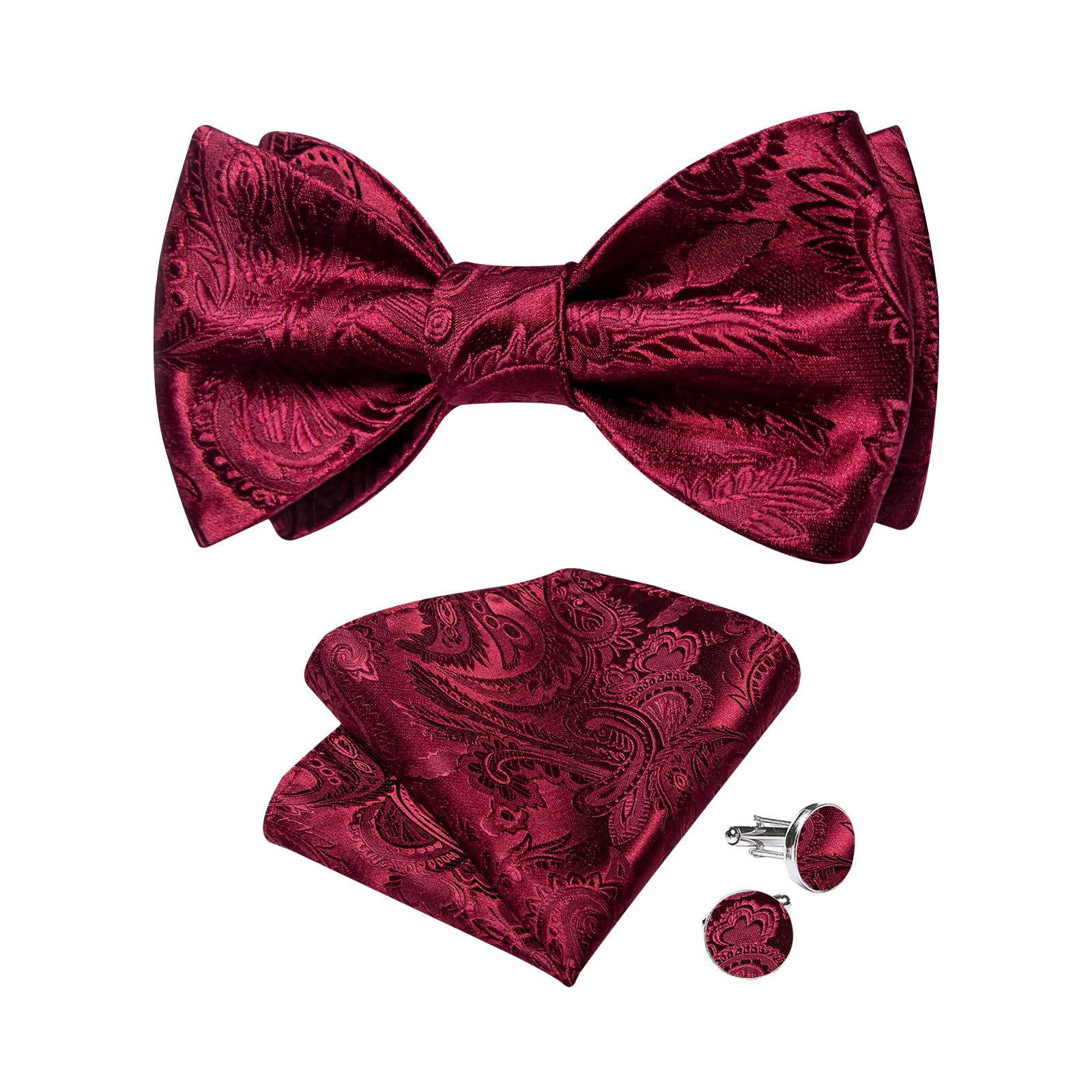 - 【PURCHASE CONTAINS】Formal Burgundy Bowtie + Pocket Square + Cufflinks were in a gorgeous box,it is a great gift for Father's Day, Christmas, Easter, Valentine's Day, New Year, Christmas Eve etc