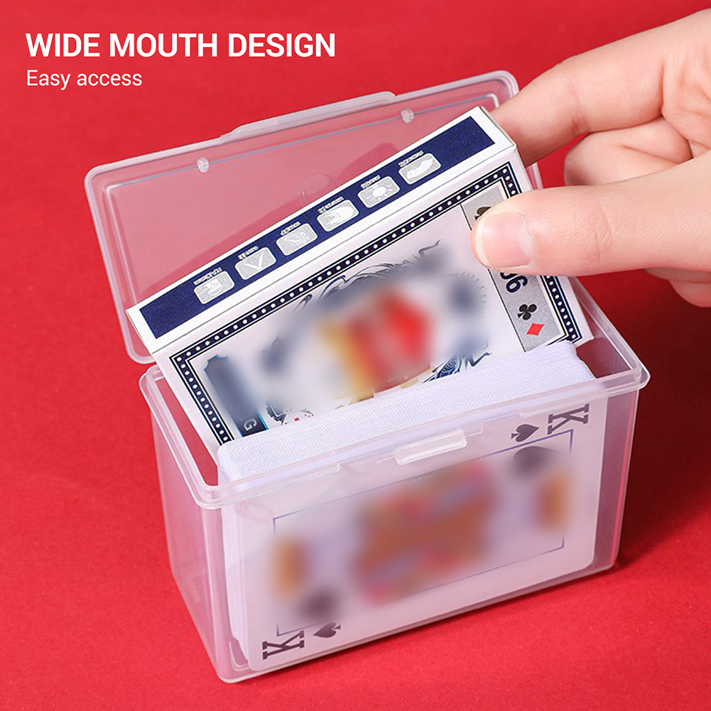 Portable to carry: you don't need to put the cards in your pocket, when you are traveling, partying or outing, you can put the cards in the playing card deck plastic boxes and throw it into a briefcase, backpack or bag to well protect your cards, also convenient to carry.