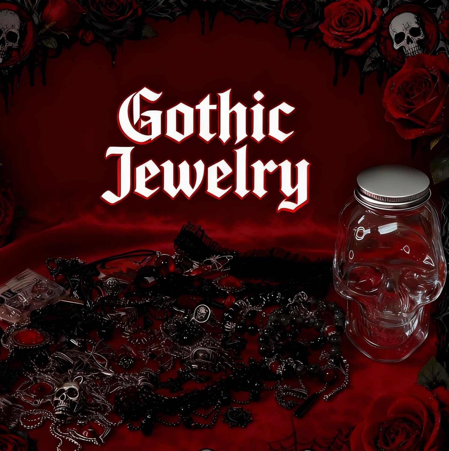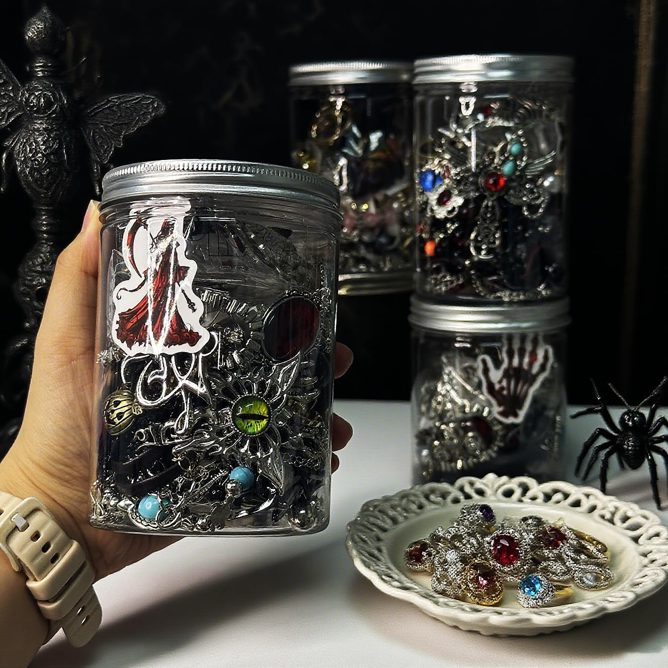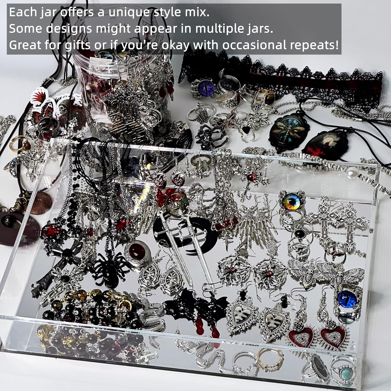 Mystery Jewelry Jar Bundle,Mystery Jewelry Jar,30-35PCS Surprise Gothic Jewelry Box for Women, Gift Set(Gothic Witch Punk Necklace,Earrings, Rings,bracelets/bangles),Unique Birthday Gift for Her