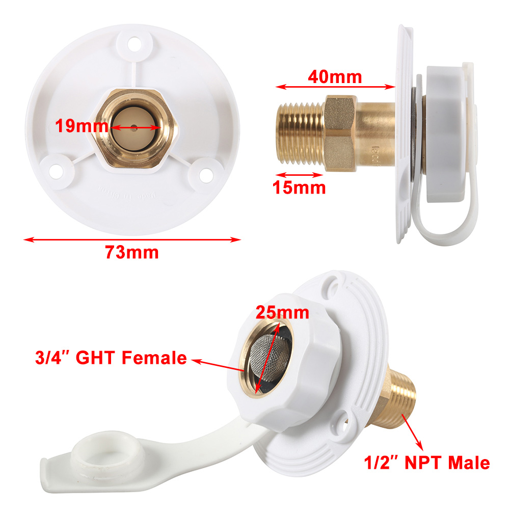 RV City Water Inlet With Check Valve Flange Hose Connector Connection
