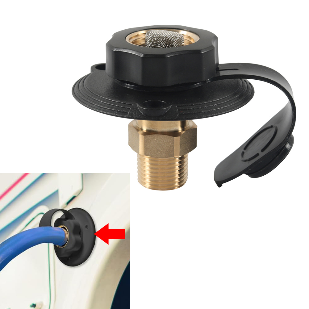 RV City Water Inlet With Check Valve Flange Hose Connector Connection Features: 1. Made to protect your hose from kinks and pinches while extending its life. 2. Connects to 1 inch threaded pipe on the outside. 3/4" threaded pipe on the inside. 3. The housing for the pipe is plastic, making it durable protection for your inlet. It has impact, road salt and acid resistance. 4. This city water fill inlet features a check valve and high-quality brass pipe threads for a secure, easy fill. No more struggling with filling up your RV's water tank. 5. City water connect inlet flanges use for many trailer marine RV camper connection to city water hoses, keeps contaminants out of your fresh water system, Easy-grip knob lets you easily attach and detach your hose. 6. The body of RV city water inlet valve is brass, keeping your water safe to drink. The flange is made of sturdy plastic. Durable construction allows the check valve backflow preventer to withstand high pressure, temperature, resistant to corrosion and frequent daily use. Specification: Condition: Brand New (Never Been Used or Installed) Material: High Quality ABS+Brass Color: Black Fitment Type: Performance/Custom Placement on Vehicle: Rear Fitment: Applicable to most RVs. Please kindly check our item description, sizes and photos, make sure this item fit for your car. Packing Included: 1 Pcs Inlet Flange Notes: 1. No installation instruction included, professional installation is highly recommended. 2. There may be slight size deviations due to manual measurement, different measuring methods and tools. 3. The real color of the item may be slightly different from the pictures shown on website caused by many factors such as brightness of your monitor and light brightness. 4. Fitted photos just for your reference, which to show the installation effect and show you which model car can be installed, the actual product is same as the detail photos, please also check the other photos carefully.